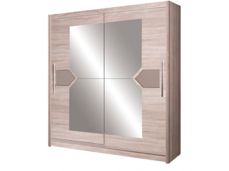 DOME šatní skříň s posuvnými dveřmi hodící se ke stejnojmenné ložnici. Skříně se vyrábí i v šíři 200 cm. Barva provedení v dubu Sonoma v kombinaci se zrcadlem.
