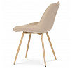 Designová skořepinová jídelní židle je čalouněna krémovou látkou s výrazným prošitím sedací části i části určené k opření. Sedací část je zaoblená a má vyvýšené boky, plynule přecházející do opěráku. Polstrování je z kvalitní PU pěny. Čtyřnohá kovová podnož je v 3D dekoru dub. Nohy jsou kruhového průřezu a kónické, ukončené černými platovými kluzáky. Celá podnož je svařená a dodávána jako celek, nehrozí tedy občasné dotahování šroubů jako u podnože šroubované.Toto vše působí nejen jako stylový designový prvek, ale dělá židli velmi pevnou, pohodlnou a praktickou na kratší i delší posezení. Svým provedením ve Skandinávském stylu a decentní barevností se židle hodí nejen k jídelnímu stolu, ale i jako součást pracoven či konferenčních místností.