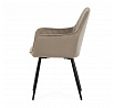 Jídelní židle s označením DCH-215 CAP4 nabízí komfortní sezení díky čalounění z jemné sametové látky v cappuccino odstínu, která je doplněna designovým prošitím v kosočtverečkovém vzoru. Pevné černé kovové nohy zajišťují stabilitu a dlouhou životnost, zatímco integrované područky přispívají k pohodlí při sezení. Sedák i opěradlo jsou ergonomicky tvarované pro podporu správného držení těla během jídla nebo odpočinku. Díky kombinaci kvalitních materiálů a precizního zpracování je židle vhodná do moderních i klasických interiérů. Nosnost a přesné rozměry nejsou uvedeny, avšak konstrukce odpovídá standardům pro běžné domácí použití.