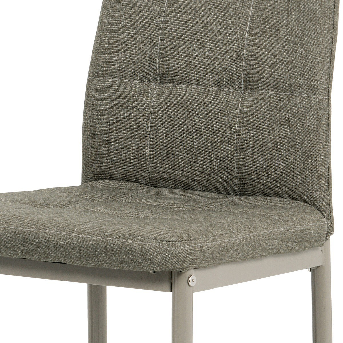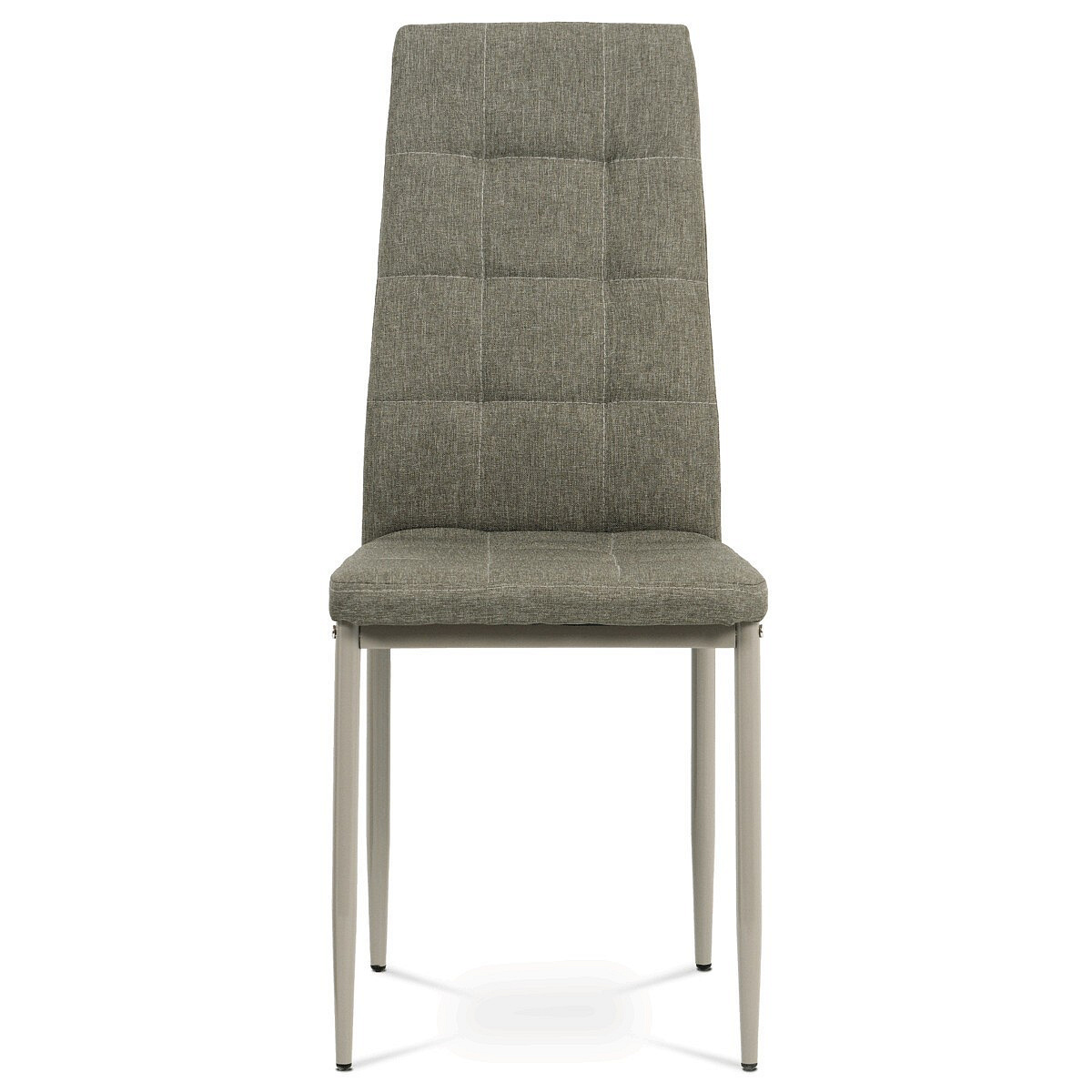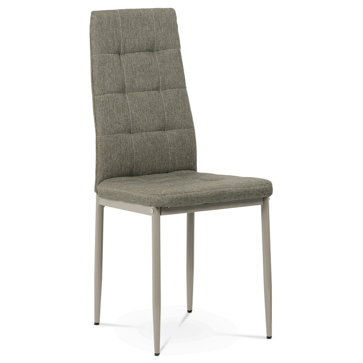 Jídelní židle v industriálním stylu a minimalistickém designu. Je potažena středně hrubou látkou v trendy odstínu dark cappuccino s výrazným čtvercovým prošitím s čalounickými vtahy sedáku i opěráku. Polstrování je z kvalitní PU pěny. Čtyřnohá podnož je kovová, s povrchovou úpravou cappuccino matnou práškovou barvou. Nohy jsou kruhového průřezu a kónické, na koncích jsou opatřeny černými plastovými kluzáky, které minimalizují nebezpečí poškození povrchu podlahy na minimum. Nosnost židle je až 110 kg. Tato židle najde platné využití v prostorách domácí jídelny či kuchyně.