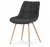 Designová skořepinová jídelní židle je čalouněna černou látkou s výrazným prošitím sedací části i části určené k opření. Sedací část je zaoblená a má vyvýšené boky, plynule přecházející do opěráku. Polstrování je z kvalitní PU pěny. Čtyřnohá kovová podnož je v 3D dekoru dub. Nohy jsou kruhového průřezu a kónické, ukončené černými platovými kluzáky. Celá podnož je svařená a dodávána jako celek, nehrozí tedy občasné dotahování šroubů jako u podnože šroubované.Toto vše působí nejen jako stylový designový prvek, ale dělá židli velmi pevnou, pohodlnou a praktickou na kratší i delší posezení. Svým provedením ve Skandinávském stylu a decentní barevností se židle hodí nejen k jídelnímu stolu, ale i jako součást pracoven či konferenčních místností.