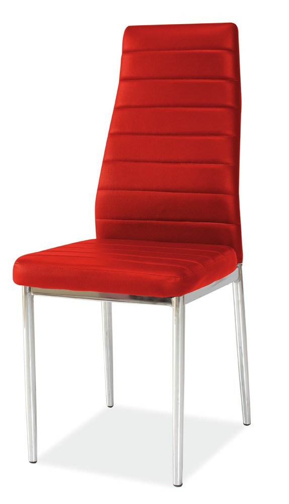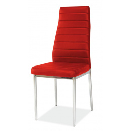 Sedací a opěrná část je počalouněna do ekokůže. Konstrukce židle je v provedení chrom.