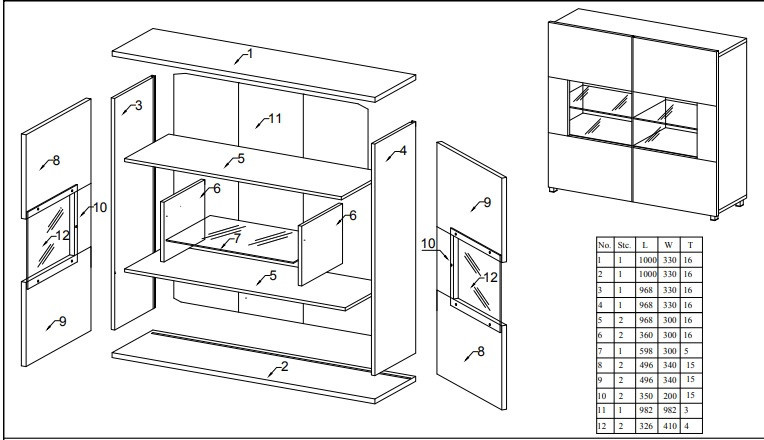 : Nábytek je dodáván v demontu. Součástí nábytku je montážní plánek včetně všech potřebných spojovacích materiálů. V případě potřeby lze objednat montáž nábytku.