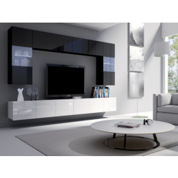 Systém CALABRINI je moderní nábytkový systém. Skříně jsou vyrobeny ze 16 mm vrstvené desky a dvířka jsou ve vysokém lesku. Hrany jsou odolnější vůči každodennímu používání díky použití PVC dýhy. Stěna je vhodná pro všechny moderní a minimalistické interiéry. Eleganci také dodává možnost LED osvětlení, které není zahrnuto v ceně. Lze zakoupit také jednotlivě a vytvořit si tak vlastní sestavu hodící se do vašeho interiéru. TV komodu si můžete buď pověsit nebo nachat stát na podlaze.