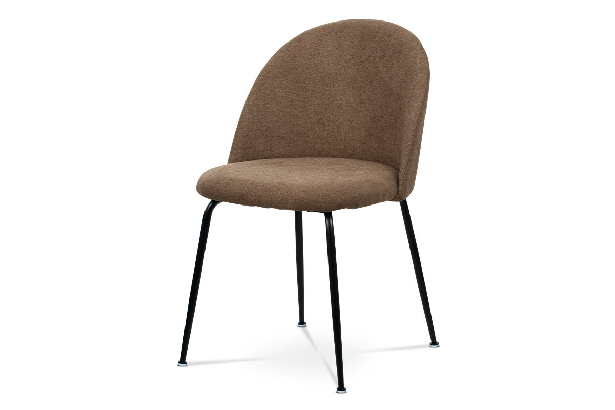 Jídelní židle, hnědá látka, kovová čtyřnohá podnož, černý matný lak