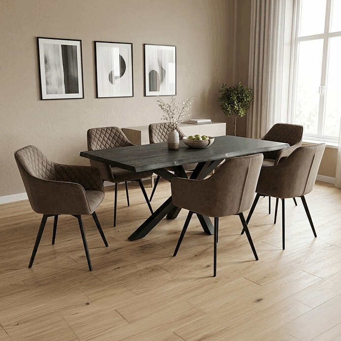 Jídelní židle DCH-425 BR4 z kolekce Autronic nabízí komfortní sezení díky sametové látce v hnědém odstínu, která příjemně doplňuje moderní interiéry. Čalouněné opěradlo i sedák jsou ergonomicky tvarované a vybavené integrovanými područkami, které zvyšují pohodlí při delším posezení. Stabilní kovová podnož v černém matném provedení zajišťuje pevnost a stabilitu celé židle. Praktickou funkcí je otočný mechanismus s možností otáčení o 180° a vratným pohybem, který usnadňuje manipulaci a přístup k židli. Nosnost židle odpovídá běžným standardům pro jídelní sezení, což ji činí vhodnou volbou pro domácnosti i komerční prostory.