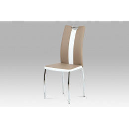 Jídelní židle, potah kombinace cappucino a bílé ekokůže, kovová čtyřnohá chromov