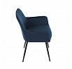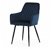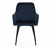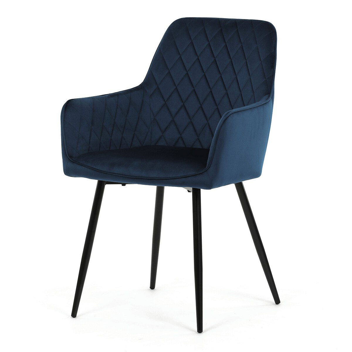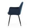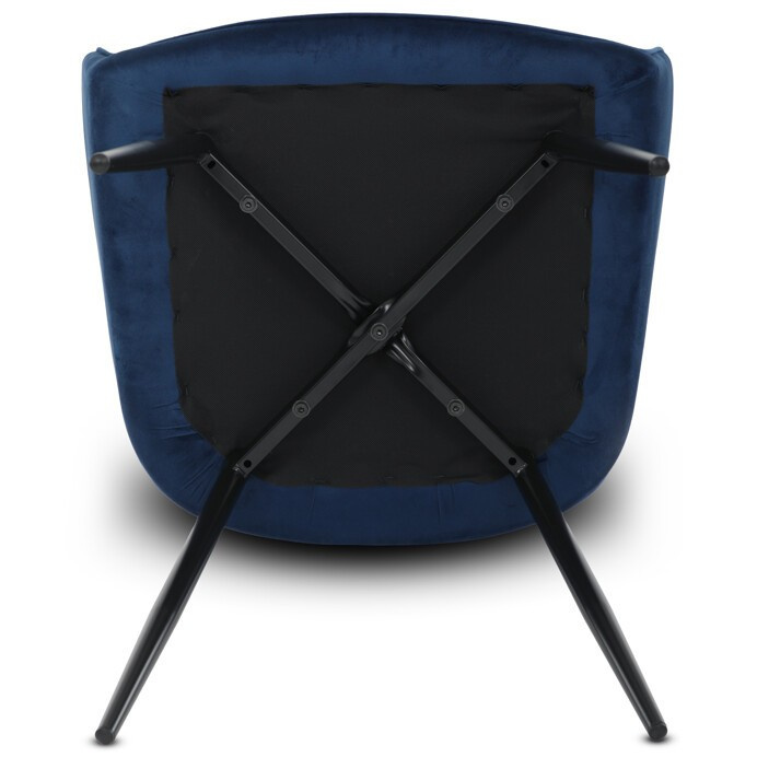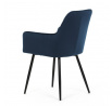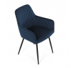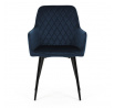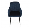 Jídelní židle DCH-215 BLUE4 s potahem z modré sametové látky nabízí příjemný dotek a vizuálně atraktivní design díky prošívání ve tvaru kosočtverců na opěradle a područkách. Pevné kovové nohy v černém matném provedení zajišťují stabilitu a dlouhou životnost. Sedák i opěradlo jsou vyplněné měkkou pěnou, která přispívá k pohodlnému posezení během delších jídel i setkání. Područky jsou integrované do tvaru židle, což podporuje ergonomii a komfort uživatele. Židle je vhodná do moderních interiérů, kde vynikne její elegantní sametový vzhled a kvalitní zpracování.