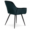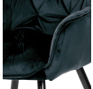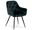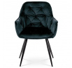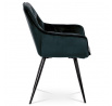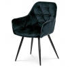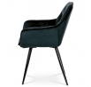 Jídelní židle s označením DCH-421 BK4 nabízí komfortní sezení díky čalounění z modročerné sametové látky, která je příjemná na dotek a snadno se udržuje. Pevná kovová čtyřnohá podnož s černým lakem zajišťuje stabilitu a dlouhou životnost. Designové prošití na opěradle a sedáku podtrhuje moderní vzhled židle, zatímco integrované područky přispívají k pohodlí při delším posezení. Židle není otočná, což podporuje pevnou a stabilní pozici při stolování. Vhodná je zejména do jídelních prostor, kde kombinuje estetiku s funkčností.