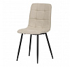 Jídelní židle v industriálním stylu. Potah je z hladké látky v krémové barvě. Výrazné je čtvercové prošití čelních ploch sedáku i opěradla. Polstrování je z kvalitní PU pěny. Stabilitu židle zajišťují čtyři kónické kovové nohy s kvalitním práškovým nástřikem v černé matné barvě. Ukončené jsou černými plastovými kluzáky, zabraňujícími poškození tvrdých povrchů podlah. Nohy jsou kruhového průřezu o nejvyšším průměru 3 cm. Tento minimalistický design jídelních židlí je velmi oblíben pro svoji nadčasovost i pohodlí, které poskytuje. Můžete ji bez obav použít k široké škále stolů v různých materiálech i provedeních.