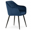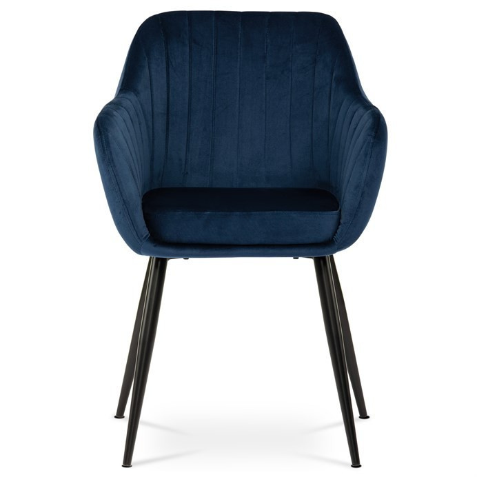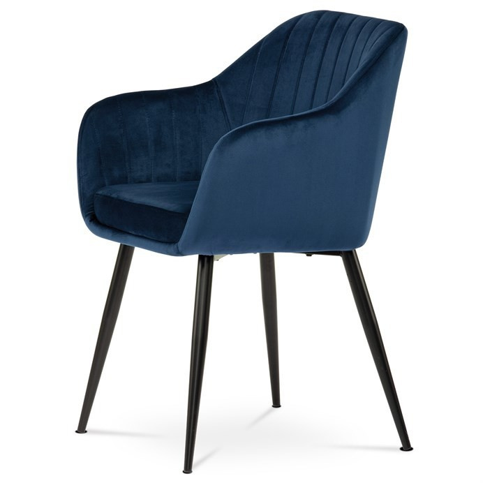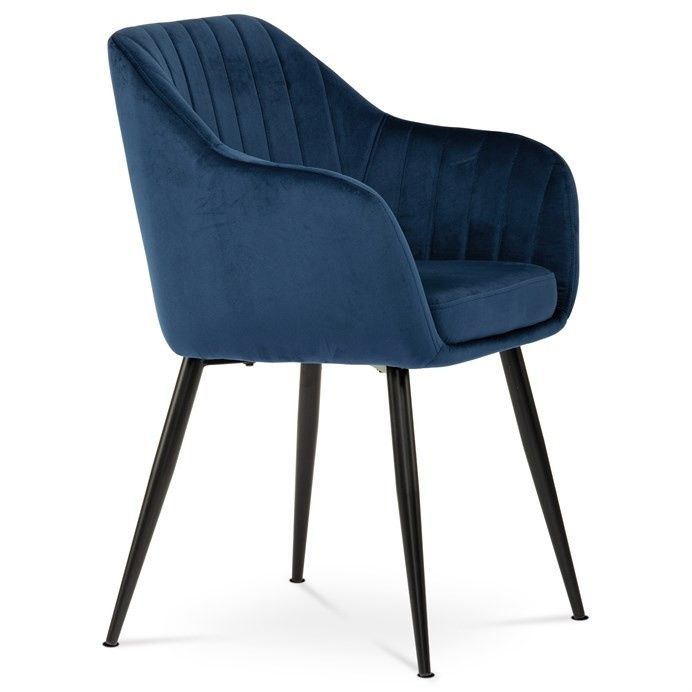 Dokonalý design, industriální styl a perfektní pohodlí je pro tuto židli samozřejmostí. Skořepina sedáku i opěradla má pevnou kovovou kostru, potah z velmi kvalitní sametové látky v matném provedení a luxusním odstínu NAVY modré. Polstrování je z PU pěny. Bonusem ke zvýšení pohodlí posedu je 8 cm zvýšený a extra polstrovaný sedák a praktické pohodlné opěrky s opěrnou plochou ve výšce 69 cm od podlahy. Příjemný dekorativní prvek vytvářejí svislá prošití vnitřních částí opěradla i boků. Použitá látka je velmi odolná a perfektně se čistí. Stabilitu židle zajišťují čtyři kónické kovové nohy s kvalitním práškovým nástřikem v černé matné barvě. Ukončené jsou černými plastovými kluzáky, zabraňující poškození tvrdých povrchů podlah. Nohy mají kruhový průřez o průměru od 2 do 3,5 cm v horní části. Všechna tato plus produkují z tohoto modelu skvělou volbu pro Váš výběr zařízení jídelních a nebo obývacích prostor, ale skvěle se hodí i jako konferenční židle do zasedacích místností. Nosnost židle je až 120 kg. Základní rozměry jsou – celková šíře 58 cm, celková hloubka 57 cm, celková výška 84 cm, výška sedu 52 cm a hloubka sedu 43 cm.