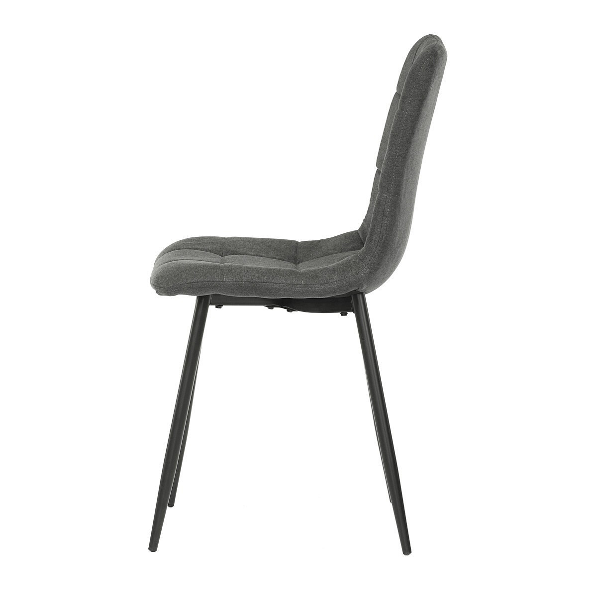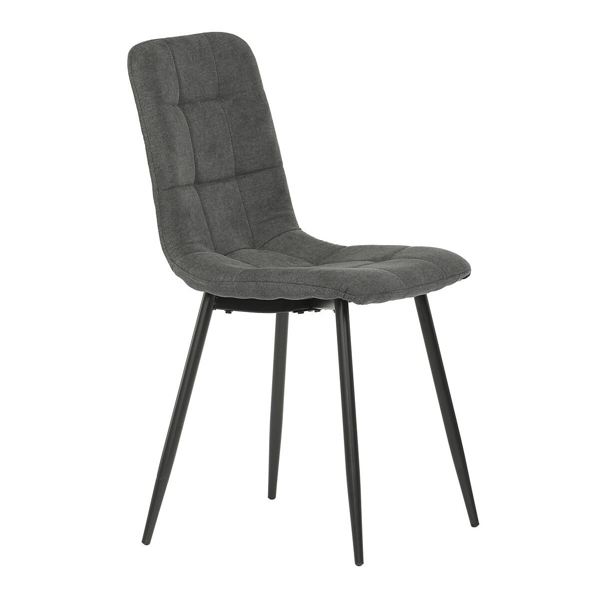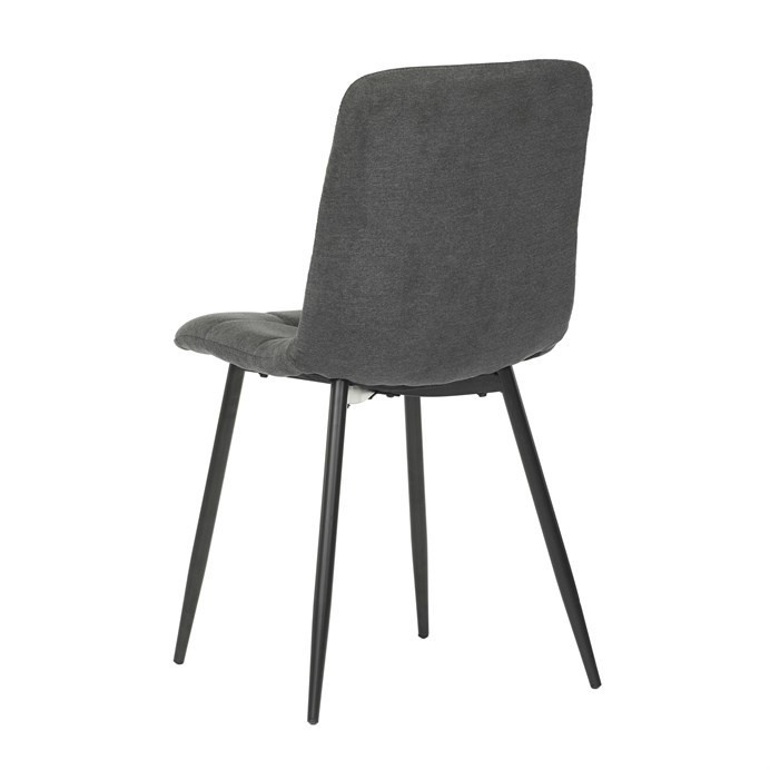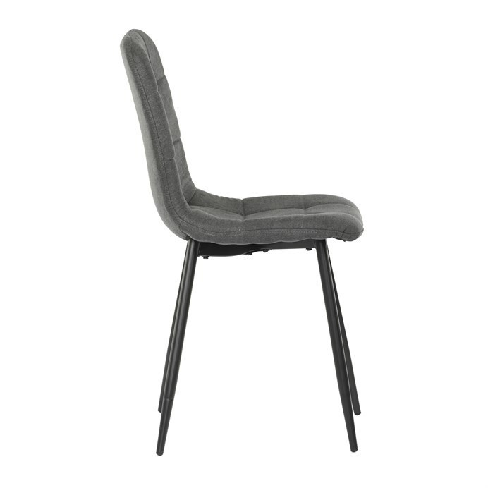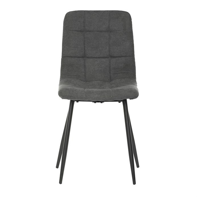 Jídelní židle v industriálním stylu. Potah je z hladké látky v šedé barvě. Výrazné je čtvercové prošití čelních ploch sedáku i opěradla. Polstrování je z kvalitní PU pěny. Stabilitu židle zajišťují čtyři kónické kovové nohy s kvalitním práškovým nástřikem v černé matné barvě. Ukončené jsou černými plastovými kluzáky, zabraňujícími poškození tvrdých povrchů podlah. Nohy jsou kruhového průřezu o nejvyšším průměru 3 cm. Tento minimalistický design jídelních židlí je velmi oblíben pro svoji nadčasovost i pohodlí, které poskytuje. Můžete ji bez obav použít k široké škále stolů v různých materiálech i provedeních.