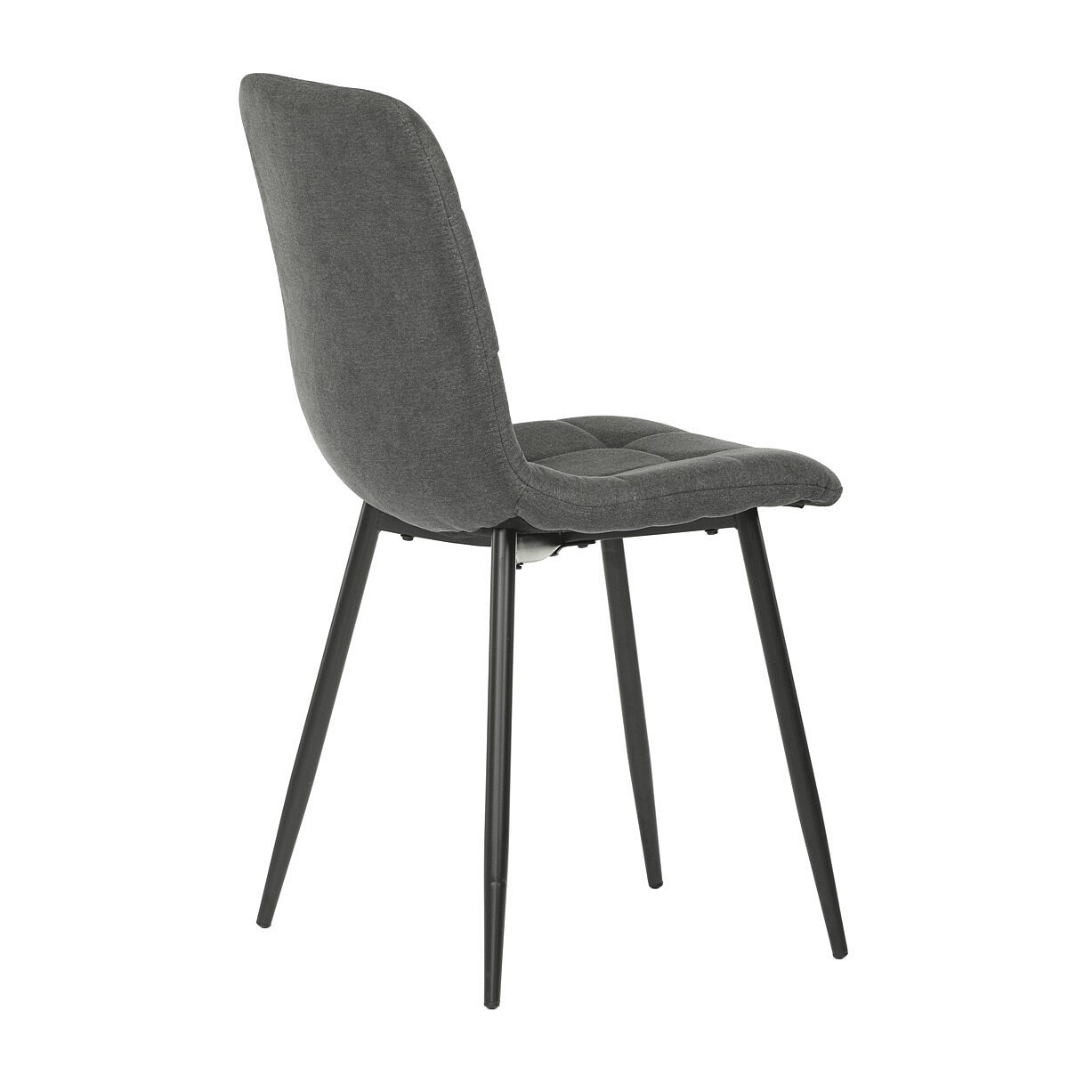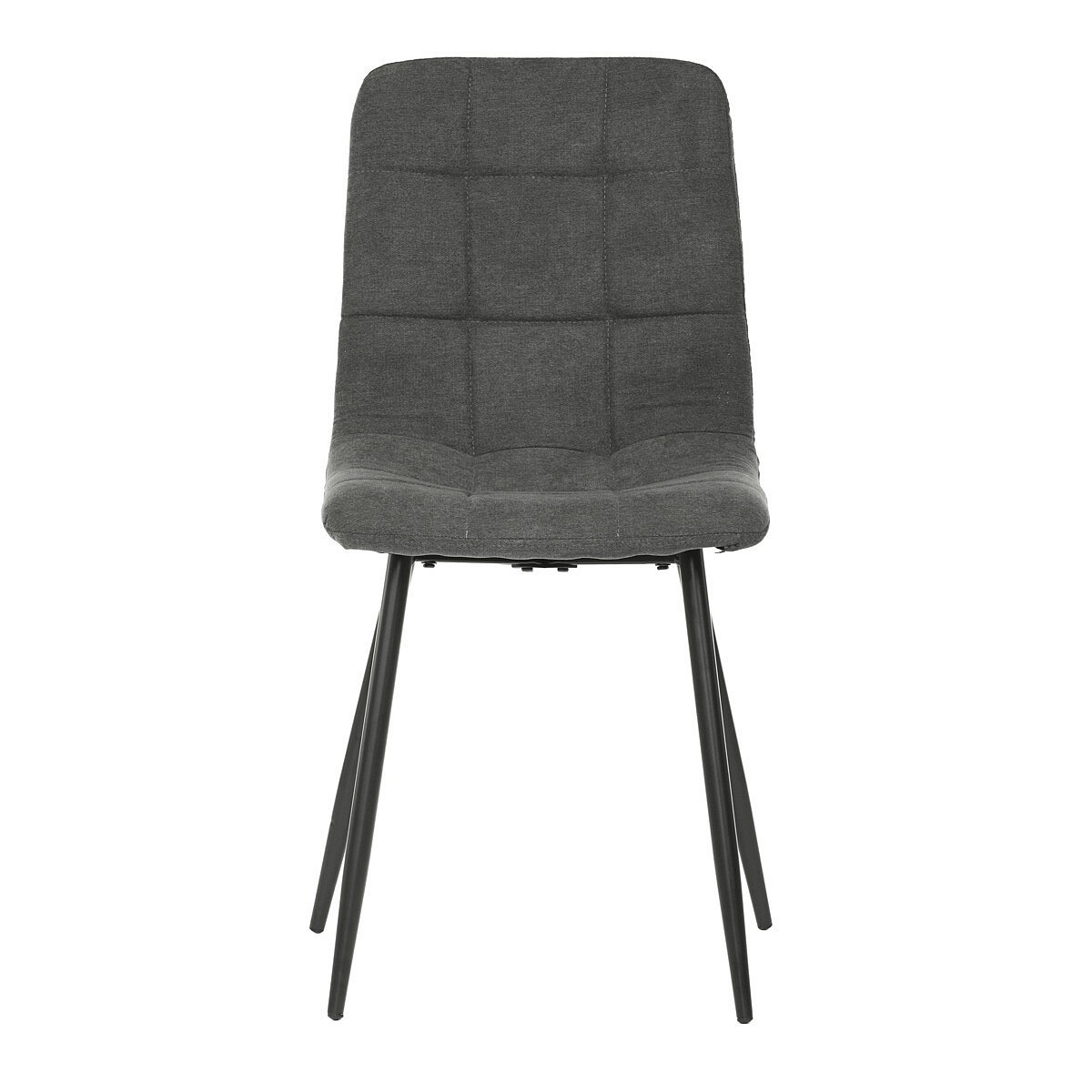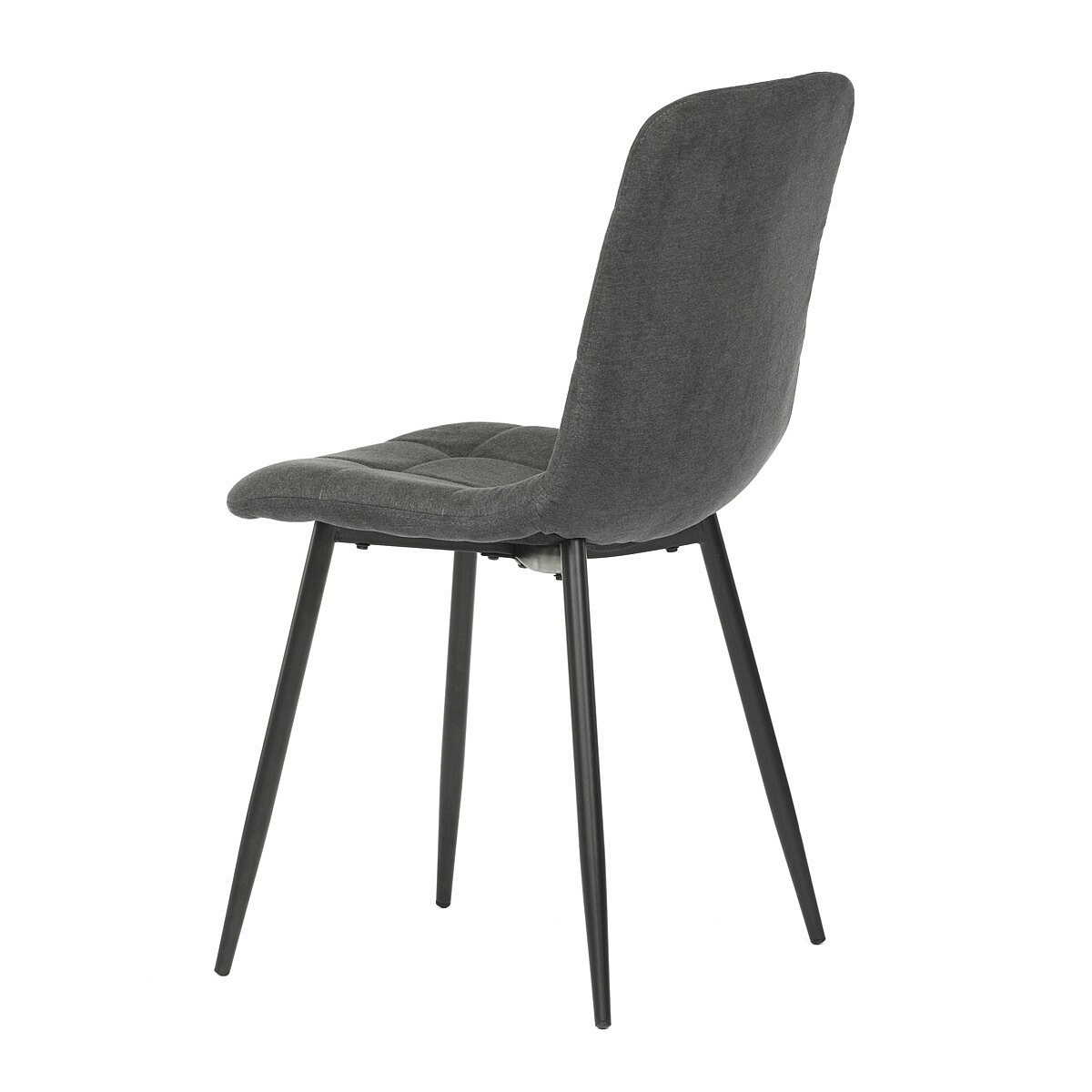 Jídelní židle v industriálním stylu. Potah je z hladké látky v šedé barvě. Výrazné je čtvercové prošití čelních ploch sedáku i opěradla. Polstrování je z kvalitní PU pěny. Stabilitu židle zajišťují čtyři kónické kovové nohy s kvalitním práškovým nástřikem v černé matné barvě. Ukončené jsou černými plastovými kluzáky, zabraňujícími poškození tvrdých povrchů podlah. Nohy jsou kruhového průřezu o nejvyšším průměru 3 cm. Tento minimalistický design jídelních židlí je velmi oblíben pro svoji nadčasovost i pohodlí, které poskytuje. Můžete ji bez obav použít k široké škále stolů v různých materiálech i provedeních.