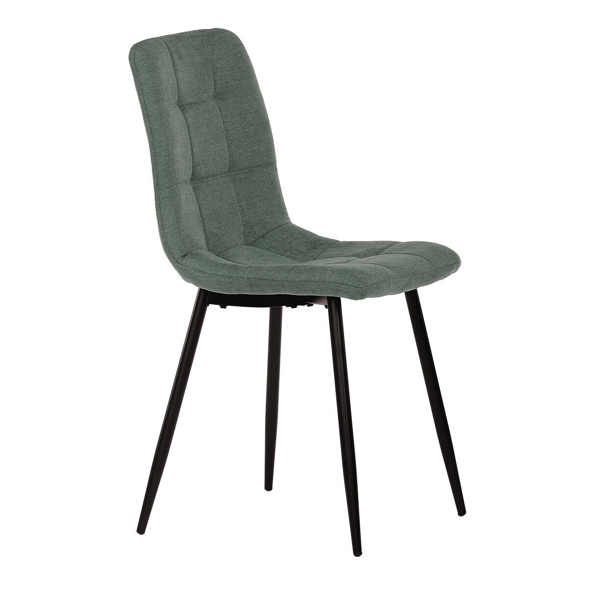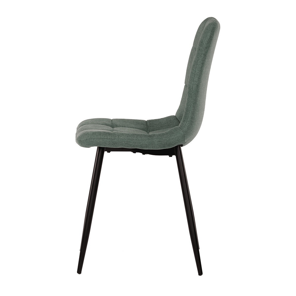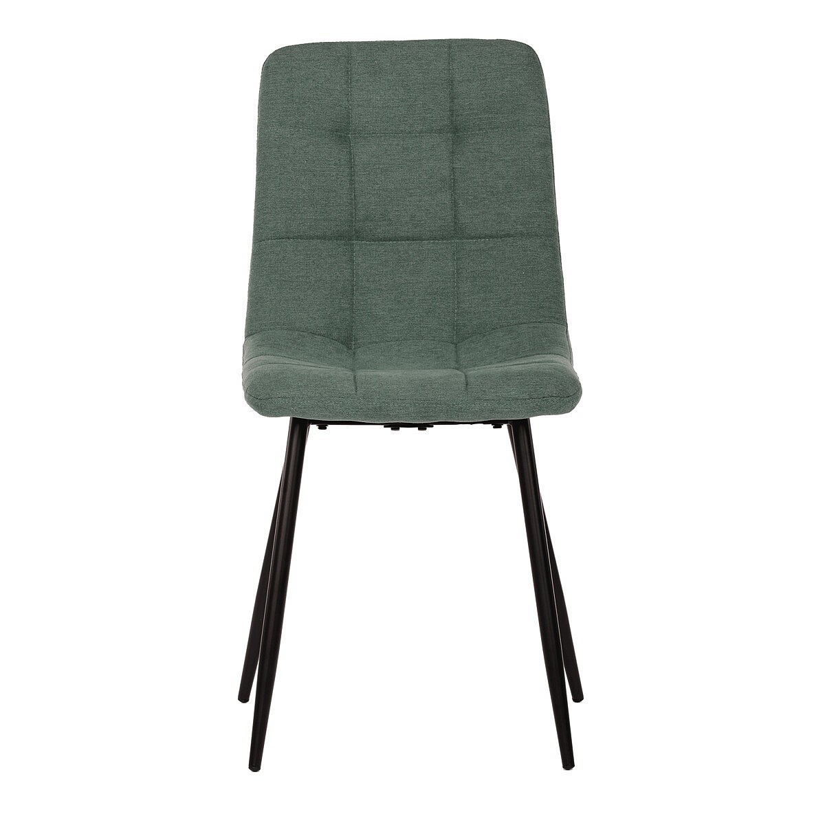 Jídelní židle v industriálním stylu. Potah je z hladké látky v zelené barvě. Výrazné je čtvercové prošití čelních ploch sedáku i opěradla. Polstrování je z kvalitní PU pěny. Stabilitu židle zajišťují čtyři kónické kovové nohy s kvalitním práškovým nástřikem v černé matné barvě. Ukončené jsou černými plastovými kluzáky, zabraňujícími poškození tvrdých povrchů podlah. Nohy jsou kruhového průřezu o nejvyšším průměru 3 cm. Tento minimalistický design jídelních židlí je velmi oblíben pro svoji nadčasovost i pohodlí, které poskytuje. Můžete ji bez obav použít k široké škále stolů v různých materiálech i provedeních.