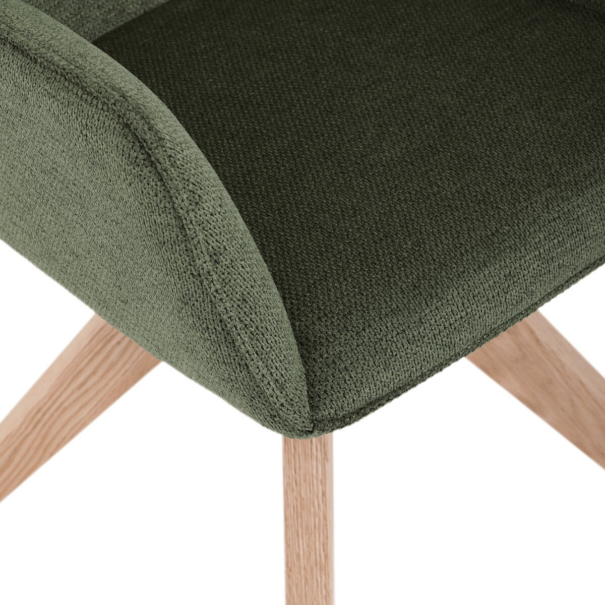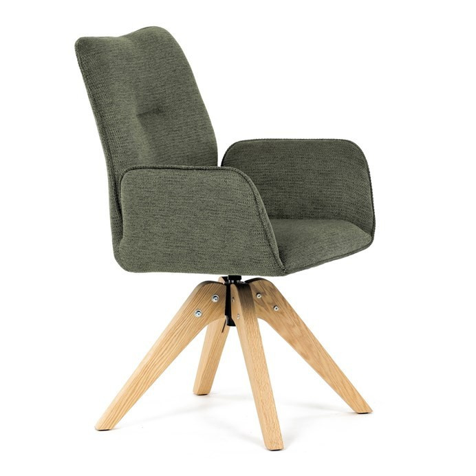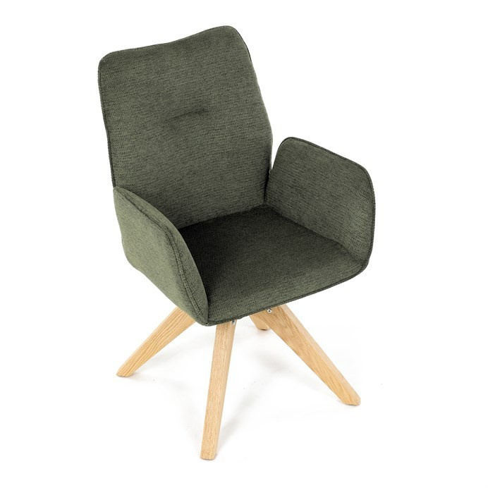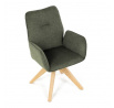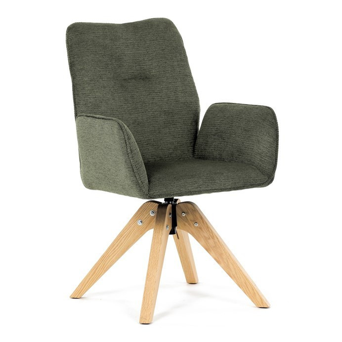 Stylová jídelní židle značky Autronic v moderním designu, která kombinuje komfort a eleganci. Její pohodlný sedák i opěrák jsou čalouněny voděodolnou látkou v příjemném zeleném odstínu, což z ní činí skvělý doplněk do jakéhokoliv interiéru. Masivní dřevěné nohy v přírodní barvě dodávají židli stabilitu a odolnost, zatímco otočný mechanismus s funkcí 360° přináší uživatelský komfort. Tato jídelní židle je ideální nejen do domácností, ale také do kaváren či restaurací, kde je požadován moderní a funkční nábytek.