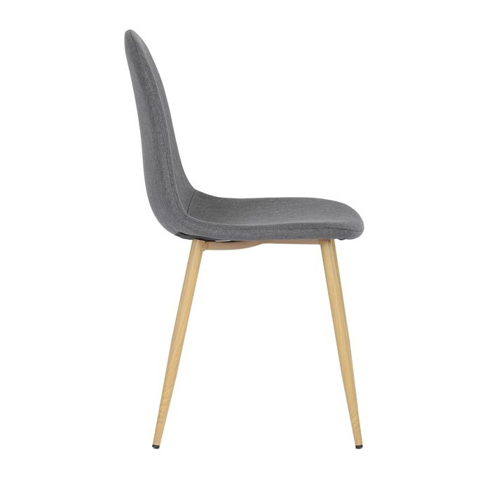 Jídelní židle s označením CT-972 GREY2 kombinuje jednoduchý design s praktickým provedením vhodným do moderních i klasických interiérů. Sedák a opěradlo jsou potažené šedou látkou, která nabízí příjemný povrch pro sezení a snadnou údržbu. Pevné kovové nohy v dekoru dubu zajišťují stabilitu a dlouhou životnost židle. Absence područek umožňuje snadné zasunutí pod stůl a šetří prostor v jídelně. Židle není otočná, což přispívá k její pevnosti a jednoduchosti užívání.