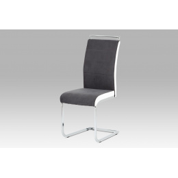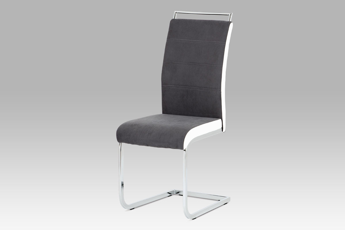 Jídelní židle šedá látka + bílá koženka / chrom