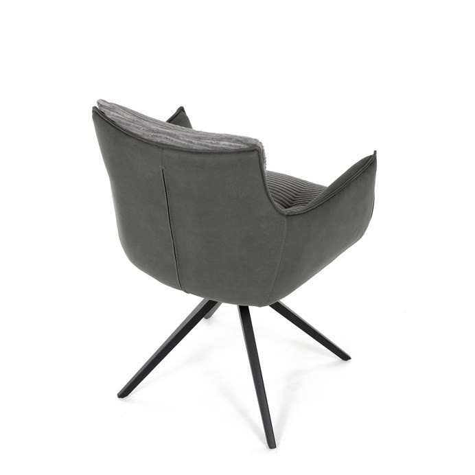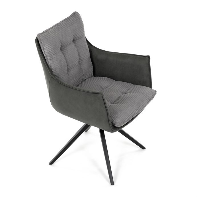 Jídelní židle DCH-D1345 GREY2 značky Autronic vyniká otočným 360° vratným mechanismem, který zajišťuje plynulý a tichý návrat do výchozí polohy, což přispívá k pohodlí a praktičnosti při používání. Konstrukce židle kombinuje pevný černý kovový rám s moderním designem čtyřnohé podnože, která zaručuje stabilitu a dlouhou životnost. Sedák a opěradlo jsou potaženy kombinací dvou typů šedé látky, přičemž vnitřní část tvoří měkký, žebrovaný textil s vysokým polstrováním, které poskytuje ergonomickou podporu a komfort i při delším sezení. Čalounění je pečlivě prošité a tvarované tak, aby zvýraznilo estetiku a zároveň zajistilo dostatečnou prodyšnost materiálu. Područky jsou integrovány do celkové konstrukce sedáku, což zvyšuje komfort bez omezení pohybu. Díky kombinaci kvalitních materiálů a funkčních prvků je židle vhodná pro moderní jídelny i pracovní prostory, kde je kladen důraz na design i uživatelský komfort.