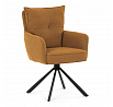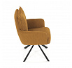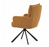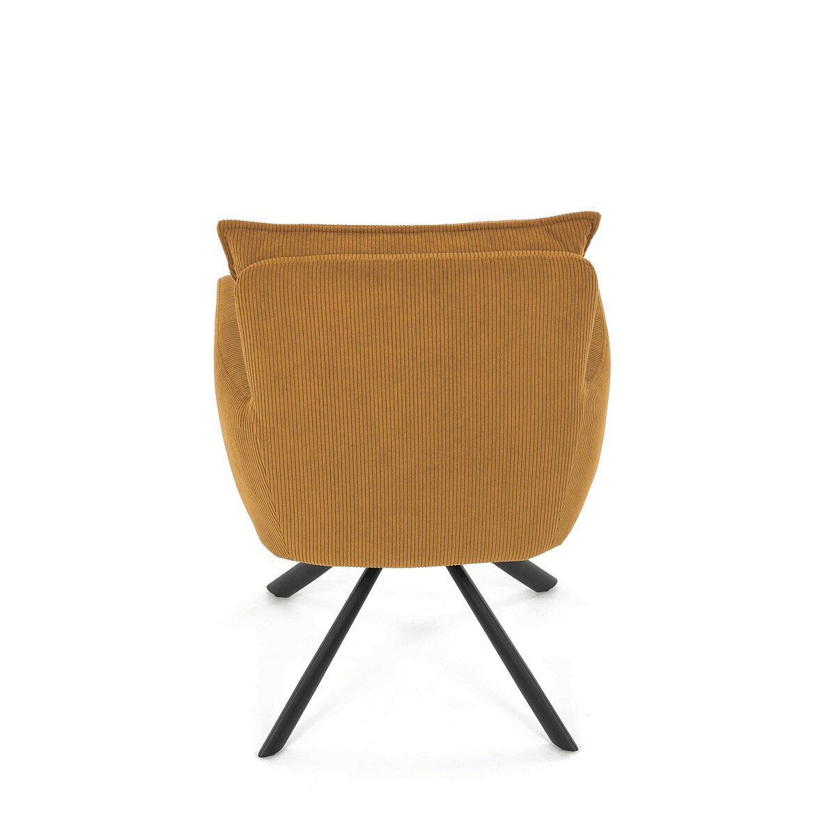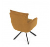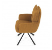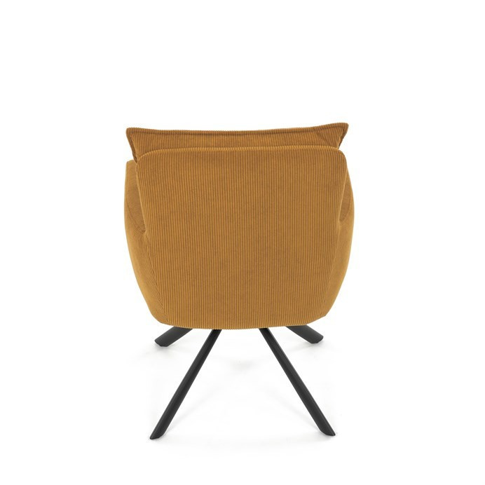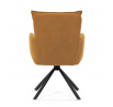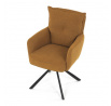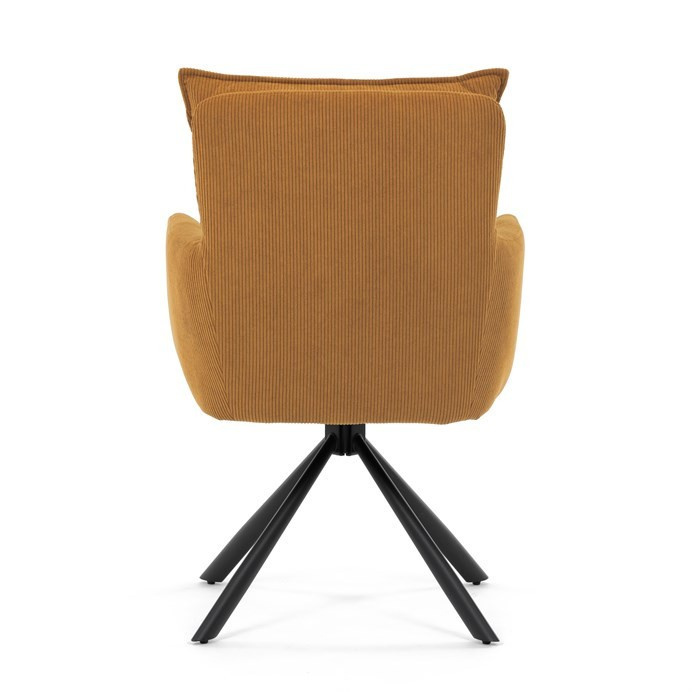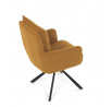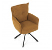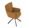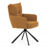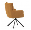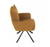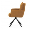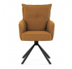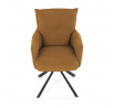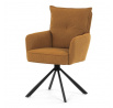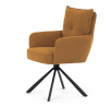 Jídelní židle s označením HC-X1128 YEL2 nabízí komfortní sezení díky vysokému polstrování sedáku a opěradla potažených žlutou manšestrovou látkou, která je příjemná na dotek a snadno se udržuje. Sedák je vybaven taštičkovými pružinami, které zvyšují pohodlí a přispívají k dlouhodobé elasticitě. Židle disponuje otočnou funkcí s možností otáčení o 180° a vratným mechanismem reset, který automaticky vrací židli do výchozí polohy, což usnadňuje manipulaci a zvyšuje ergonomii. Pevné černé kovové nohy zajišťují stabilitu a odolnost, přičemž jejich design dodává židli moderní vzhled vhodný do různých interiérů. Područky jsou integrované v čalounění, což podporuje pohodlné opření rukou během sezení.