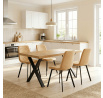 Jídelní židle s označením DCL-973 YEL4 kombinuje pohodlí sametového potahu s moderním designem. Sedák i opěradlo jsou čalouněné žlutou sametovou látkou s dekorativním prošitím ve tvaru kosočtverců, které dodává židli elegantní vzhled a zároveň příjemnou texturu. Stabilní kovové nohy v černém matném provedení zajišťují pevnou oporu a dlouhou životnost. Absence područek umožňuje snadné zasunutí židle pod stůl a větší variabilitu při sezení. Díky svému designu a barevnému provedení je vhodná do moderních i stylově zařízených jídelních prostor.