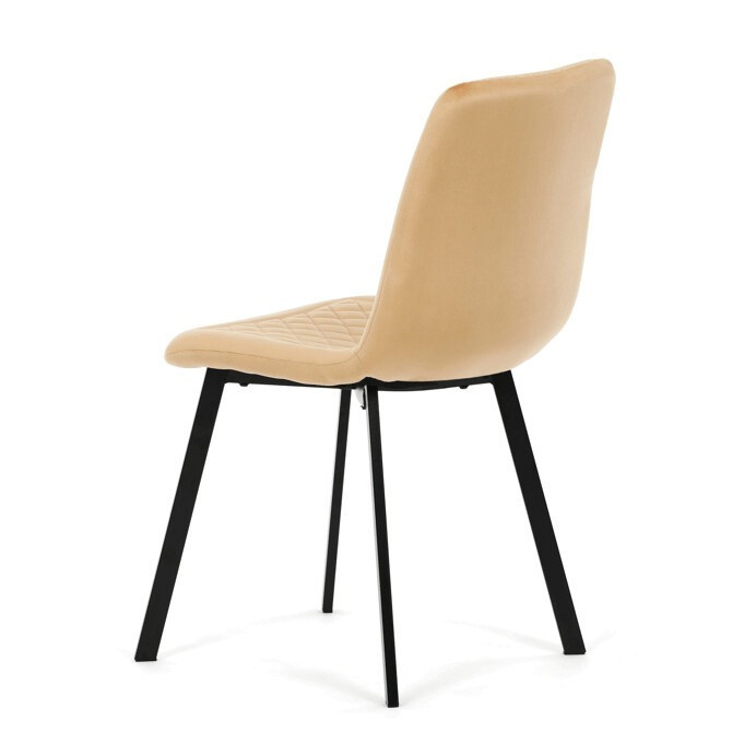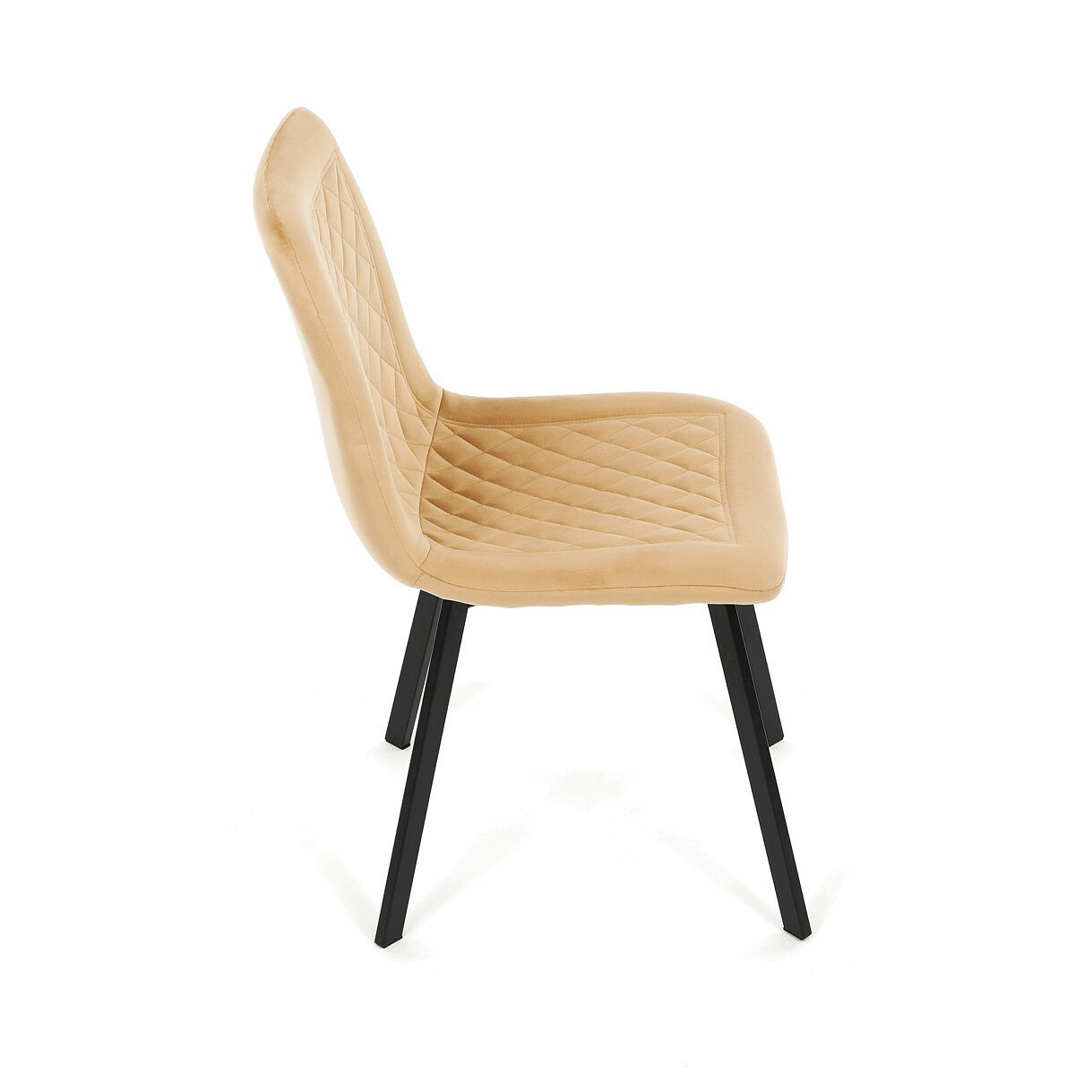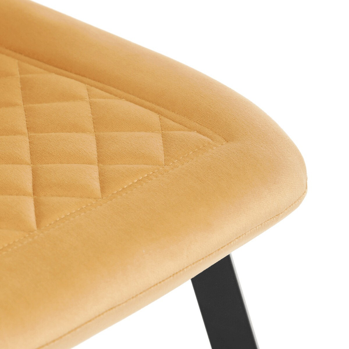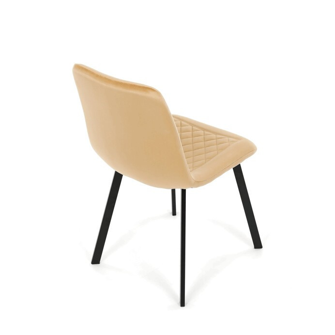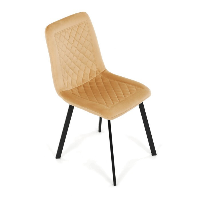 Jídelní židle s označením DCL-973 YEL4 kombinuje pohodlí sametového potahu s moderním designem. Sedák i opěradlo jsou čalouněné žlutou sametovou látkou s dekorativním prošitím ve tvaru kosočtverců, které dodává židli elegantní vzhled a zároveň příjemnou texturu. Stabilní kovové nohy v černém matném provedení zajišťují pevnou oporu a dlouhou životnost. Absence područek umožňuje snadné zasunutí židle pod stůl a větší variabilitu při sezení. Díky svému designu a barevnému provedení je vhodná do moderních i stylově zařízených jídelních prostor.