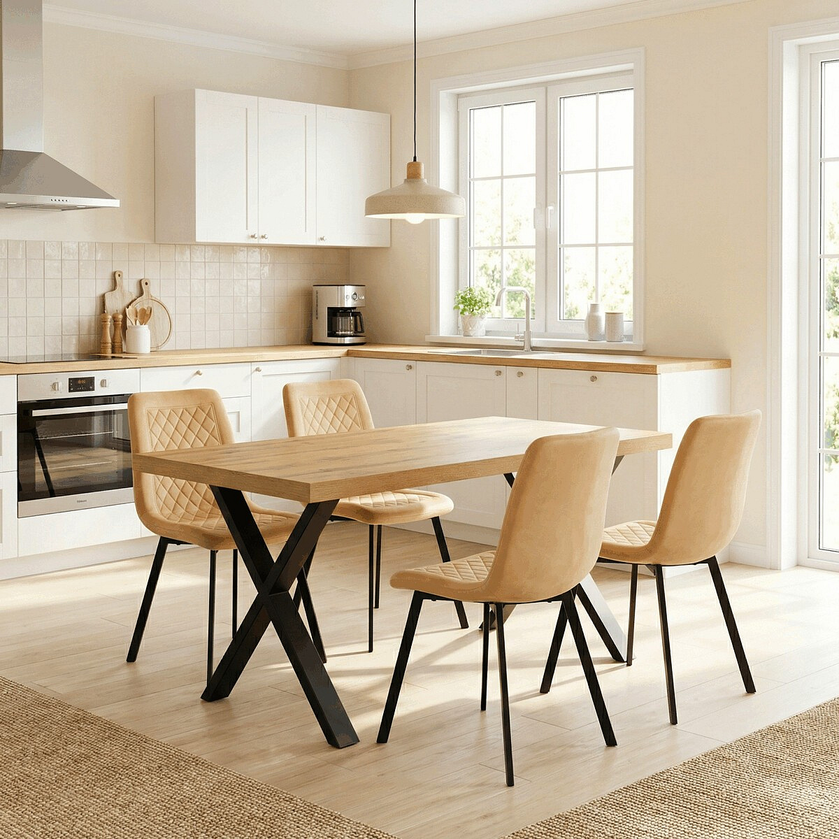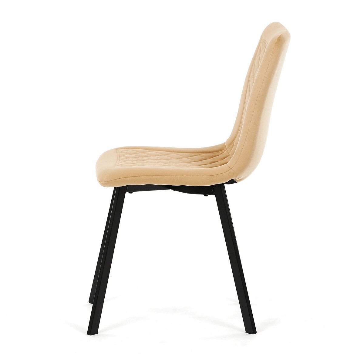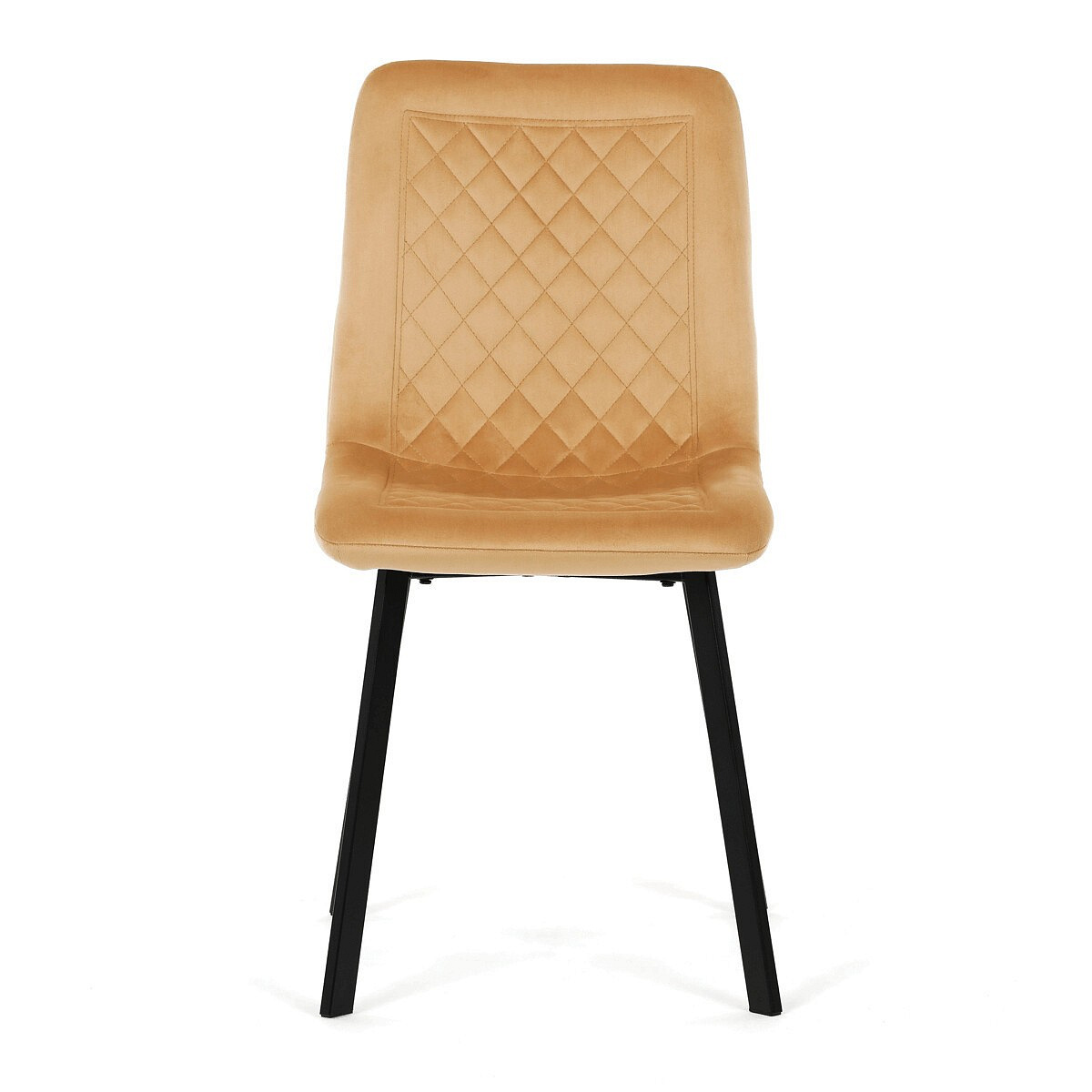 Jídelní židle s označením DCL-973 YEL4 kombinuje pohodlí sametového potahu s moderním designem. Sedák i opěradlo jsou čalouněné žlutou sametovou látkou s dekorativním prošitím ve tvaru kosočtverců, které dodává židli elegantní vzhled a zároveň příjemnou texturu. Stabilní kovové nohy v černém matném provedení zajišťují pevnou oporu a dlouhou životnost. Absence područek umožňuje snadné zasunutí židle pod stůl a větší variabilitu při sezení. Díky svému designu a barevnému provedení je vhodná do moderních i stylově zařízených jídelních prostor.