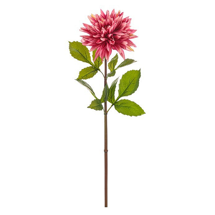 Umělá řezaná jiřina velkokvětá v tmavě růžové barvě představuje dekorativní prvek vhodný pro dlouhodobé aranžmá bez nutnosti údržby. Květ je vyroben z kvalitního textilu, který věrně imituje přirozenou strukturu a barevnost okvětních lístků, zatímco stvol a listy jsou z pevného materiálu s realistickou texturou a tvarováním. Celková délka květiny umožňuje její snadné začlenění do různých vazeb a dekorací, přičemž výrazná velikost květu přitahuje pozornost a dodává prostoru živost. Umělý materiál zaručuje stálobarevnost a odolnost vůči mechanickému poškození, což zvyšuje praktičnost použití v interiérech i komerčních prostorách. Jiřina je ideální pro aranžéry a prodejce květin, kteří hledají estetický a trvanlivý produkt s autentickým vzhledem přírodní květiny.