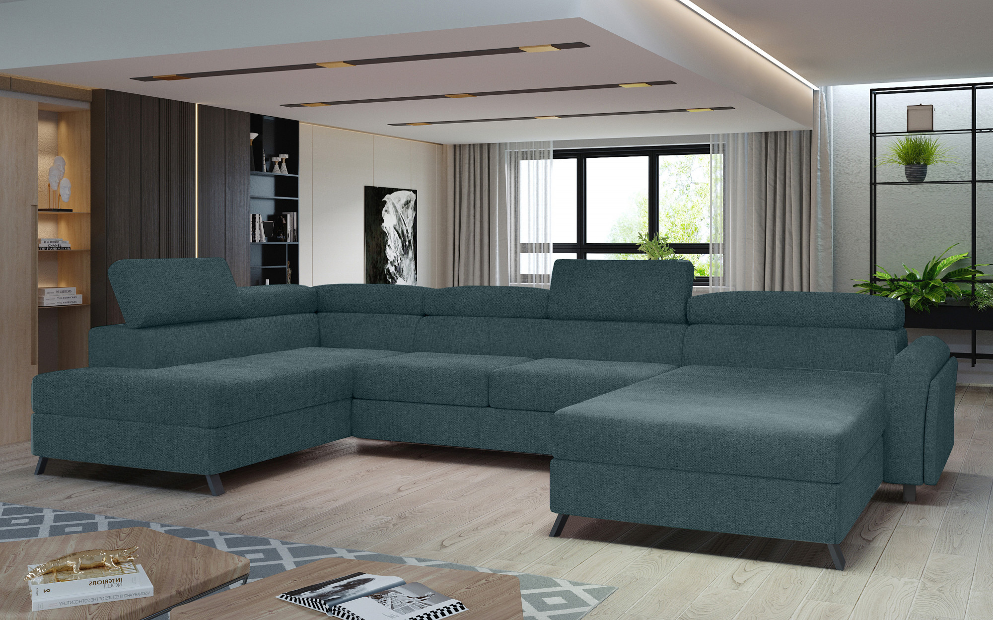 Josette je multifunkční, pohodlná a prostorná rohová pohovka ve tvaru U, která může být luxusním zakončením prostorného obývacího pokoje. Toto je vysoce kvalitní kus nábytku, synonymum pohodlí a elegance v její čisté podobě. To vše díky širokému sedáku s hloubkou 55 cm a pevnému výplni s vlnitou pružinou spolu s pěnou T30 + HR, které poskytují efekt výjimečné pružnosti, měkkosti a zároveň se starají o správnou polohu našeho těla při používání nábytku. Za Josette, která měří 370 x 190 x 98 cm, se neskrývá jen pohodlí způsobené prostorným místem k odpočinku, ale také dobře prospané noci. Toto je zde také splněno mechanismem delfín, který intuitivním a bezproblémovým způsobem rozkládá nábytek do požadované polohy, díky čemuž se pohovka promění v postel o rozměrech 110 x 300 cm. Naše rohová pohovka je také vybavena praktickým a prostorným úložným prostorem na lůžkoviny. Mezi vlastnosti tohoto modelu můžeme zahrnout nastavitelné opěrky hlavy, široké a pohodlné sedadlo, stejně jako elegantní nohy vyrobené z kovu a dřeva. Pokud jste zvědaví, čím dalším vás může Josette překvapit - zveme vás k zakoupení naší rohové pohovky.