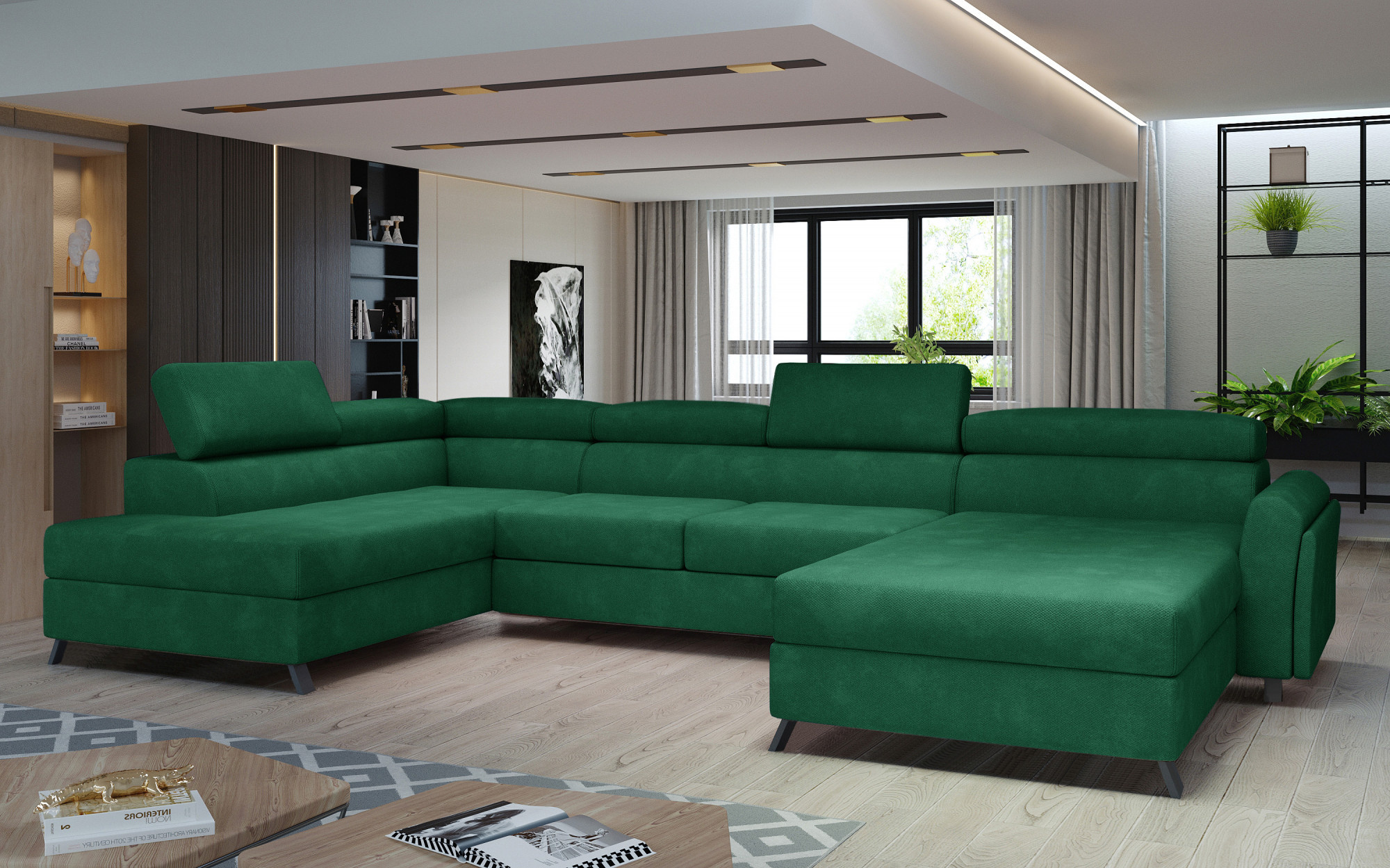 Josette je multifunkční, pohodlná a prostorná rohová pohovka ve tvaru U, která může být luxusním zakončením prostorného obývacího pokoje. Toto je vysoce kvalitní kus nábytku, synonymum pohodlí a elegance v její čisté podobě. To vše díky širokému sedáku s hloubkou 55 cm a pevnému výplni s vlnitou pružinou spolu s pěnou T30 + HR, které poskytují efekt výjimečné pružnosti, měkkosti a zároveň se starají o správnou polohu našeho těla při používání nábytku. Za Josette, která měří 370 x 190 x 98 cm, se neskrývá jen pohodlí způsobené prostorným místem k odpočinku, ale také dobře prospané noci. Toto je zde také splněno mechanismem delfín, který intuitivním a bezproblémovým způsobem rozkládá nábytek do požadované polohy, díky čemuž se pohovka promění v postel o rozměrech 110 x 300 cm. Naše rohová pohovka je také vybavena praktickým a prostorným úložným prostorem na lůžkoviny. Mezi vlastnosti tohoto modelu můžeme zahrnout nastavitelné opěrky hlavy, široké a pohodlné sedadlo, stejně jako elegantní nohy vyrobené z kovu a dřeva. Pokud jste zvědaví, čím dalším vás může Josette překvapit - zveme vás k zakoupení naší rohové pohovky.