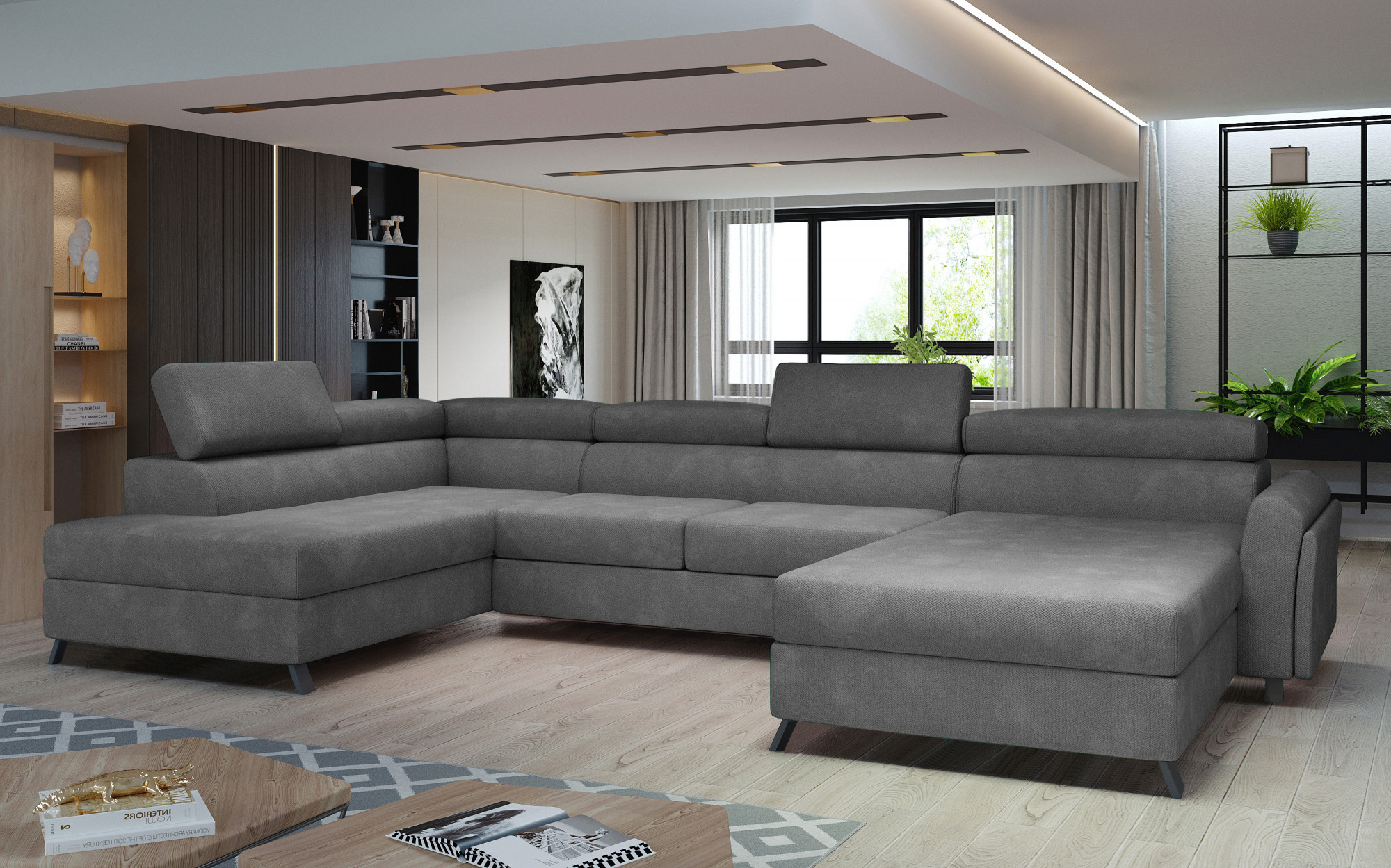 Josette je multifunkční, pohodlná a prostorná rohová pohovka ve tvaru U, která může být luxusním zakončením prostorného obývacího pokoje. Toto je vysoce kvalitní kus nábytku, synonymum pohodlí a elegance v její čisté podobě. To vše díky širokému sedáku s hloubkou 55 cm a pevnému výplni s vlnitou pružinou spolu s pěnou T30 + HR, které poskytují efekt výjimečné pružnosti, měkkosti a zároveň se starají o správnou polohu našeho těla při používání nábytku. Za Josette, která měří 370 x 190 x 98 cm, se neskrývá jen pohodlí způsobené prostorným místem k odpočinku, ale také dobře prospané noci. Toto je zde také splněno mechanismem delfín, který intuitivním a bezproblémovým způsobem rozkládá nábytek do požadované polohy, díky čemuž se pohovka promění v postel o rozměrech 110 x 300 cm. Naše rohová pohovka je také vybavena praktickým a prostorným úložným prostorem na lůžkoviny. Mezi vlastnosti tohoto modelu můžeme zahrnout nastavitelné opěrky hlavy, široké a pohodlné sedadlo, stejně jako elegantní nohy vyrobené z kovu a dřeva. Pokud jste zvědaví, čím dalším vás může Josette překvapit - zveme vás k zakoupení naší rohové pohovky.