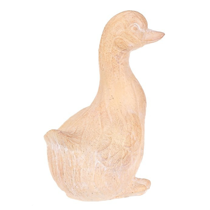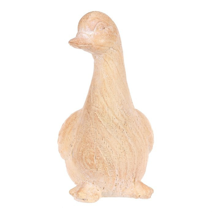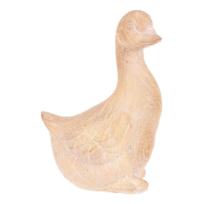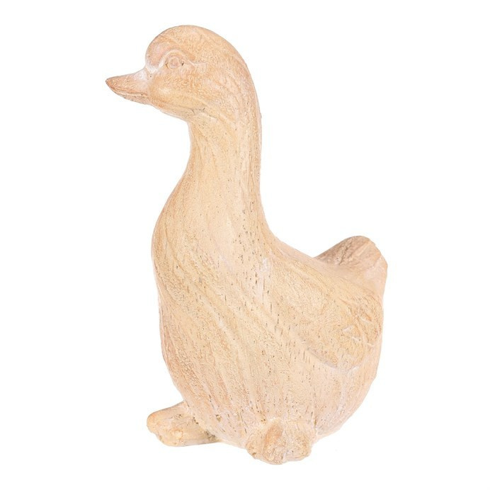 Figurka kachny z polyresinu s povrchem, který svým zpracovaním dokonale imituje dřevo, kdy působí jako ručně vyřezaná, s jemnými letokruhy, podtrhují její přírodní vzhled. Skvělá zahradní dekorace, která harmonicky splyne s okolní zelení a dřevinami.