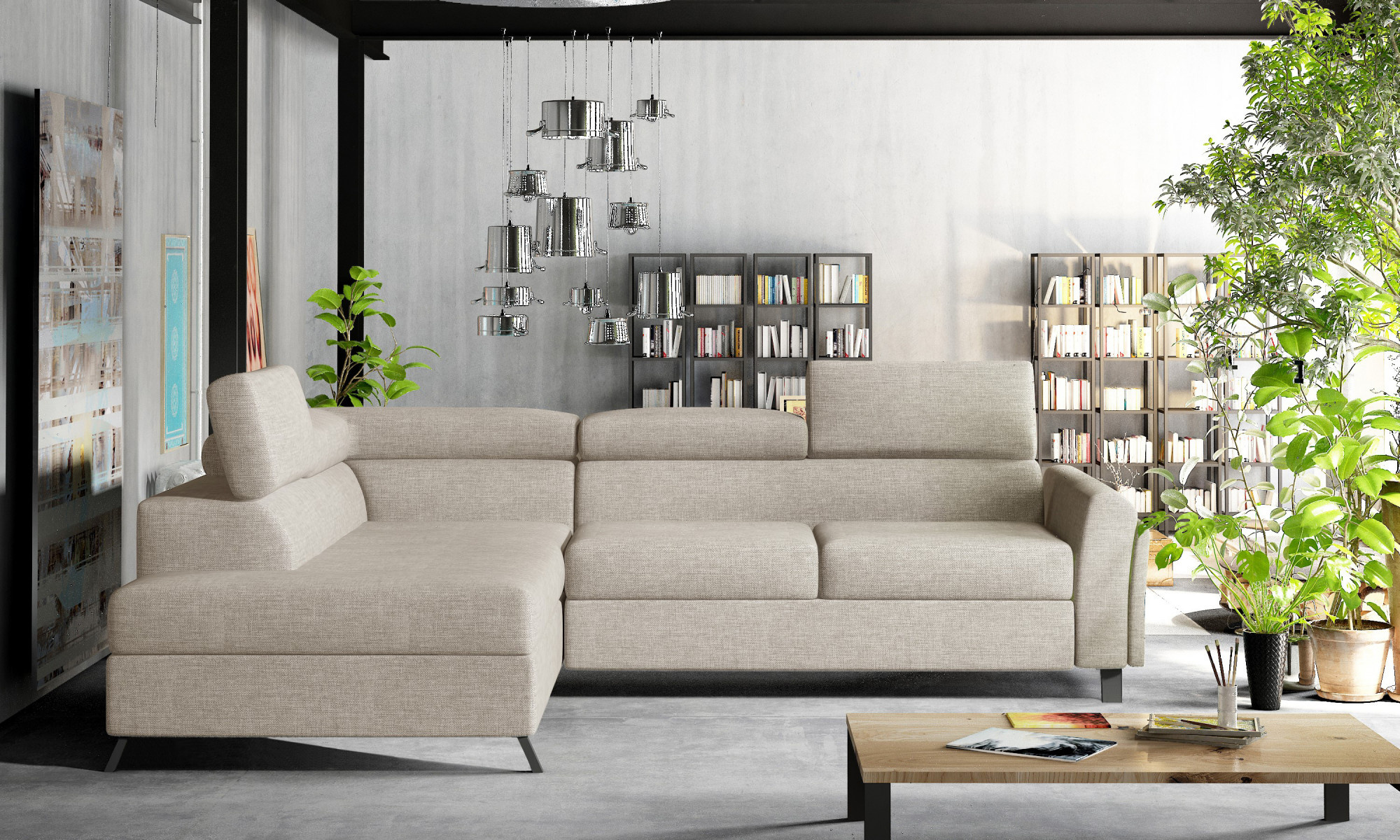 Kairos je klasická, ale pohodlná a elegantní rohová pohovka ve tvaru L, měřící 265 x 197 x 95 cm. Jeho charakteristické rysy zahrnují: stabilní konstrukci, tlumený vzhled, čalouněné opěradlo, tvarované opěradlo a područky, pohyblivé opěrky hlavy a hluboké, měkké sedadlo vyrobené z inovativní pěny T30 a HR, které jsou odolné vůči deformaci a poškození. Zajišťují také správné vyrovnání těla během odpočinku. Rohová pohovka Kairos je multifunkční kus nábytku, protože poskytuje maximální úroveň pohodlí nejen během dne, ale i v noci. Po rozložení pohovky pomocí intuitivního a jednoduchého mechanismu delfín získáme spací plochu o rozměrech 125 x 190 cm a prostorný, hluboký úložný prostor na lůžkoviny umístěný v otomanu. Pokud hledáte funkční, ale zároveň klasický a elegantní kus nábytku - volba je jednoduchá - rohová pohovka Kairos bude odpovědí na všechny vaše požadavky a očekávání.