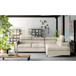 Kairos je klasická, ale pohodlná a elegantní rohová pohovka ve tvaru L, měřící 265 x 197 x 95 cm. Jeho charakteristické rysy zahrnují: stabilní konstrukci, tlumený vzhled, čalouněné opěradlo, tvarované opěradlo a područky, pohyblivé opěrky hlavy a hluboké, měkké sedadlo vyrobené z inovativní pěny T30 a HR, které jsou odolné vůči deformaci a poškození. Zajišťují také správné vyrovnání těla během odpočinku. Rohová pohovka Kairos je multifunkční kus nábytku, protože poskytuje maximální úroveň pohodlí nejen během dne, ale i v noci. Po rozložení pohovky pomocí intuitivního a jednoduchého mechanismu delfín získáme spací plochu o rozměrech 125 x 190 cm a prostorný, hluboký úložný prostor na lůžkoviny umístěný v otomanu. Pokud hledáte funkční, ale zároveň klasický a elegantní kus nábytku - volba je jednoduchá - rohová pohovka Kairos bude odpovědí na všechny vaše požadavky a očekávání.