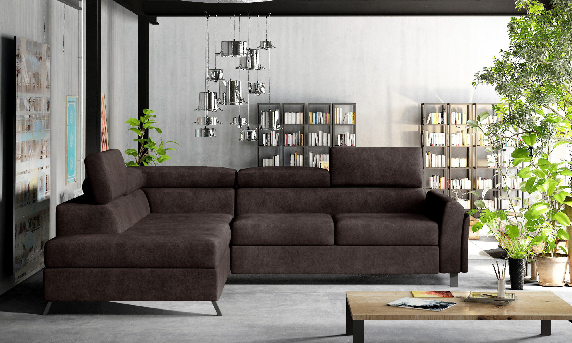 Kairos je klasická, ale pohodlná a elegantní rohová pohovka ve tvaru L, měřící 265 x 197 x 95 cm. Jeho charakteristické rysy zahrnují: stabilní konstrukci, tlumený vzhled, čalouněné opěradlo, tvarované opěradlo a područky, pohyblivé opěrky hlavy a hluboké, měkké sedadlo vyrobené z inovativní pěny T30 a HR, které jsou odolné vůči deformaci a poškození. Zajišťují také správné vyrovnání těla během odpočinku. Rohová pohovka Kairos je multifunkční kus nábytku, protože poskytuje maximální úroveň pohodlí nejen během dne, ale i v noci. Po rozložení pohovky pomocí intuitivního a jednoduchého mechanismu delfín získáme spací plochu o rozměrech 125 x 190 cm a prostorný, hluboký úložný prostor na lůžkoviny umístěný v otomanu. Pokud hledáte funkční, ale zároveň klasický a elegantní kus nábytku - volba je jednoduchá - rohová pohovka Kairos bude odpovědí na všechny vaše požadavky a očekávání.