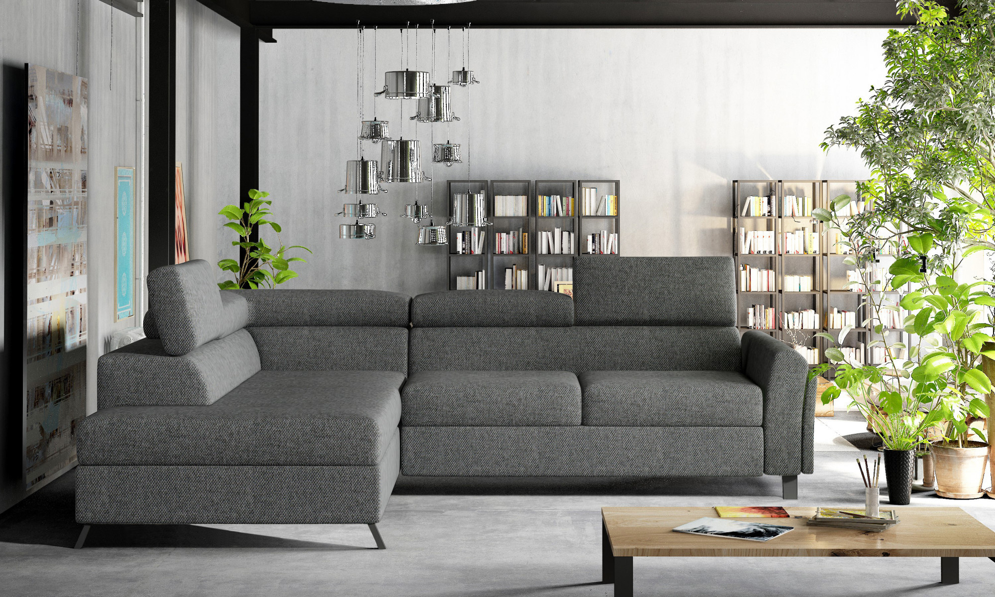 Kairos je klasická, ale pohodlná a elegantní rohová pohovka ve tvaru L, měřící 265 x 197 x 95 cm. Jeho charakteristické rysy zahrnují: stabilní konstrukci, tlumený vzhled, čalouněné opěradlo, tvarované opěradlo a područky, pohyblivé opěrky hlavy a hluboké, měkké sedadlo vyrobené z inovativní pěny T30 a HR, které jsou odolné vůči deformaci a poškození. Zajišťují také správné vyrovnání těla během odpočinku. Rohová pohovka Kairos je multifunkční kus nábytku, protože poskytuje maximální úroveň pohodlí nejen během dne, ale i v noci. Po rozložení pohovky pomocí intuitivního a jednoduchého mechanismu delfín získáme spací plochu o rozměrech 125 x 190 cm a prostorný, hluboký úložný prostor na lůžkoviny umístěný v otomanu. Pokud hledáte funkční, ale zároveň klasický a elegantní kus nábytku - volba je jednoduchá - rohová pohovka Kairos bude odpovědí na všechny vaše požadavky a očekávání.