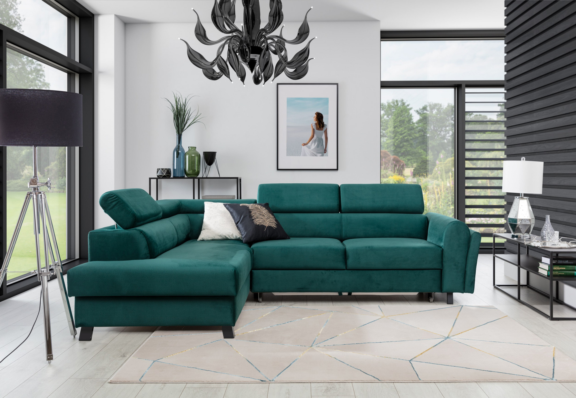 Kairos je klasická, ale pohodlná a elegantní rohová pohovka ve tvaru L, měřící 265 x 197 x 95 cm. Jeho charakteristické rysy zahrnují: stabilní konstrukci, tlumený vzhled, čalouněné opěradlo, tvarované opěradlo a područky, pohyblivé opěrky hlavy a hluboké, měkké sedadlo vyrobené z inovativní pěny T30 a HR, které jsou odolné vůči deformaci a poškození. Zajišťují také správné vyrovnání těla během odpočinku. Rohová pohovka Kairos je multifunkční kus nábytku, protože poskytuje maximální úroveň pohodlí nejen během dne, ale i v noci. Po rozložení pohovky pomocí intuitivního a jednoduchého mechanismu delfín získáme spací plochu o rozměrech 125 x 190 cm a prostorný, hluboký úložný prostor na lůžkoviny umístěný v otomanu. Pokud hledáte funkční, ale zároveň klasický a elegantní kus nábytku - volba je jednoduchá - rohová pohovka Kairos bude odpovědí na všechny vaše požadavky a očekávání.
