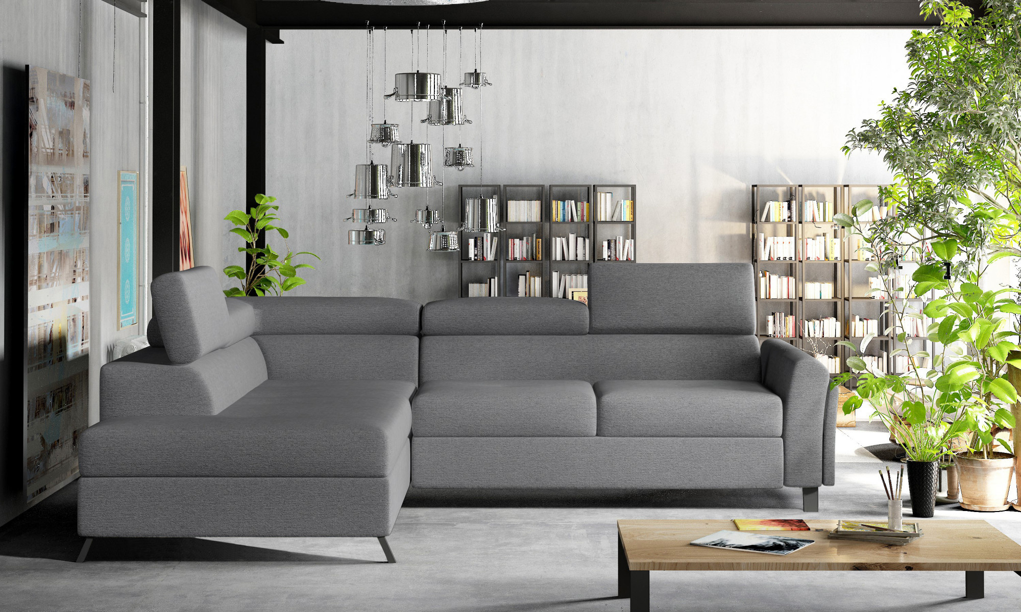 Kairos je klasická, ale pohodlná a elegantní rohová pohovka ve tvaru L, měřící 265 x 197 x 95 cm. Jeho charakteristické rysy zahrnují: stabilní konstrukci, tlumený vzhled, čalouněné opěradlo, tvarované opěradlo a područky, pohyblivé opěrky hlavy a hluboké, měkké sedadlo vyrobené z inovativní pěny T30 a HR, které jsou odolné vůči deformaci a poškození. Zajišťují také správné vyrovnání těla během odpočinku. Rohová pohovka Kairos je multifunkční kus nábytku, protože poskytuje maximální úroveň pohodlí nejen během dne, ale i v noci. Po rozložení pohovky pomocí intuitivního a jednoduchého mechanismu delfín získáme spací plochu o rozměrech 125 x 190 cm a prostorný, hluboký úložný prostor na lůžkoviny umístěný v otomanu. Pokud hledáte funkční, ale zároveň klasický a elegantní kus nábytku - volba je jednoduchá - rohová pohovka Kairos bude odpovědí na všechny vaše požadavky a očekávání.