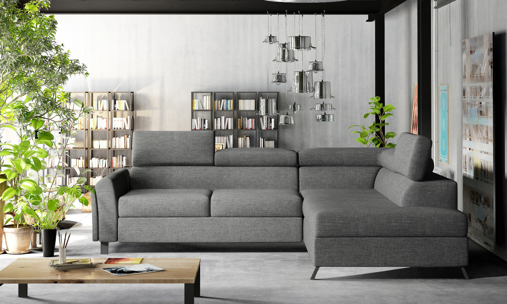 Kairos je klasická, ale pohodlná a elegantní rohová pohovka ve tvaru L, měřící 265 x 197 x 95 cm. Jeho charakteristické rysy zahrnují: stabilní konstrukci, tlumený vzhled, čalouněné opěradlo, tvarované opěradlo a područky, pohyblivé opěrky hlavy a hluboké, měkké sedadlo vyrobené z inovativní pěny T30 a HR, které jsou odolné vůči deformaci a poškození. Zajišťují také správné vyrovnání těla během odpočinku. Rohová pohovka Kairos je multifunkční kus nábytku, protože poskytuje maximální úroveň pohodlí nejen během dne, ale i v noci. Po rozložení pohovky pomocí intuitivního a jednoduchého mechanismu delfín získáme spací plochu o rozměrech 125 x 190 cm a prostorný, hluboký úložný prostor na lůžkoviny umístěný v otomanu. Pokud hledáte funkční, ale zároveň klasický a elegantní kus nábytku - volba je jednoduchá - rohová pohovka Kairos bude odpovědí na všechny vaše požadavky a očekávání.