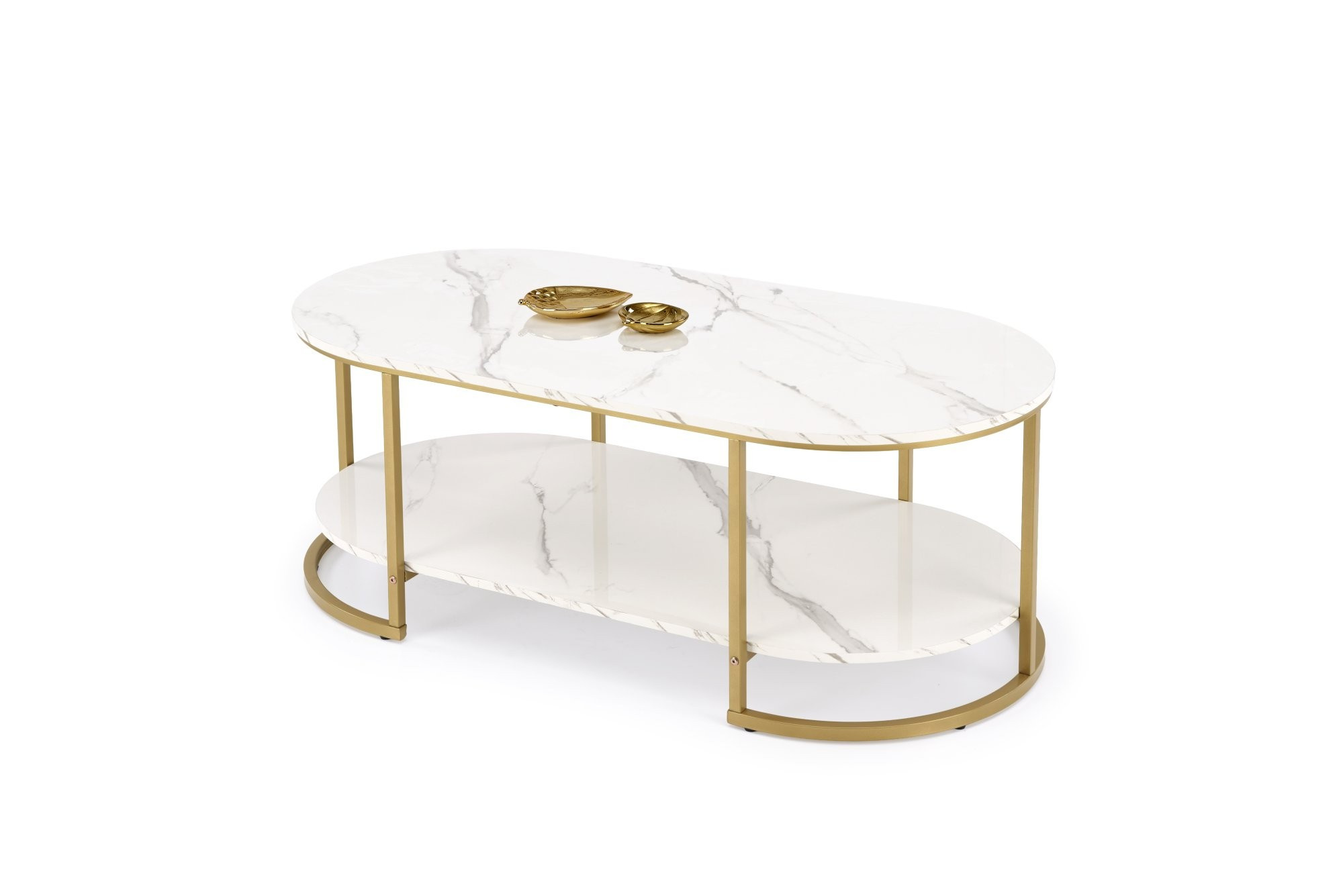 Konferenční stůl KALUA, Efekt bílého mramoru/Zlatá