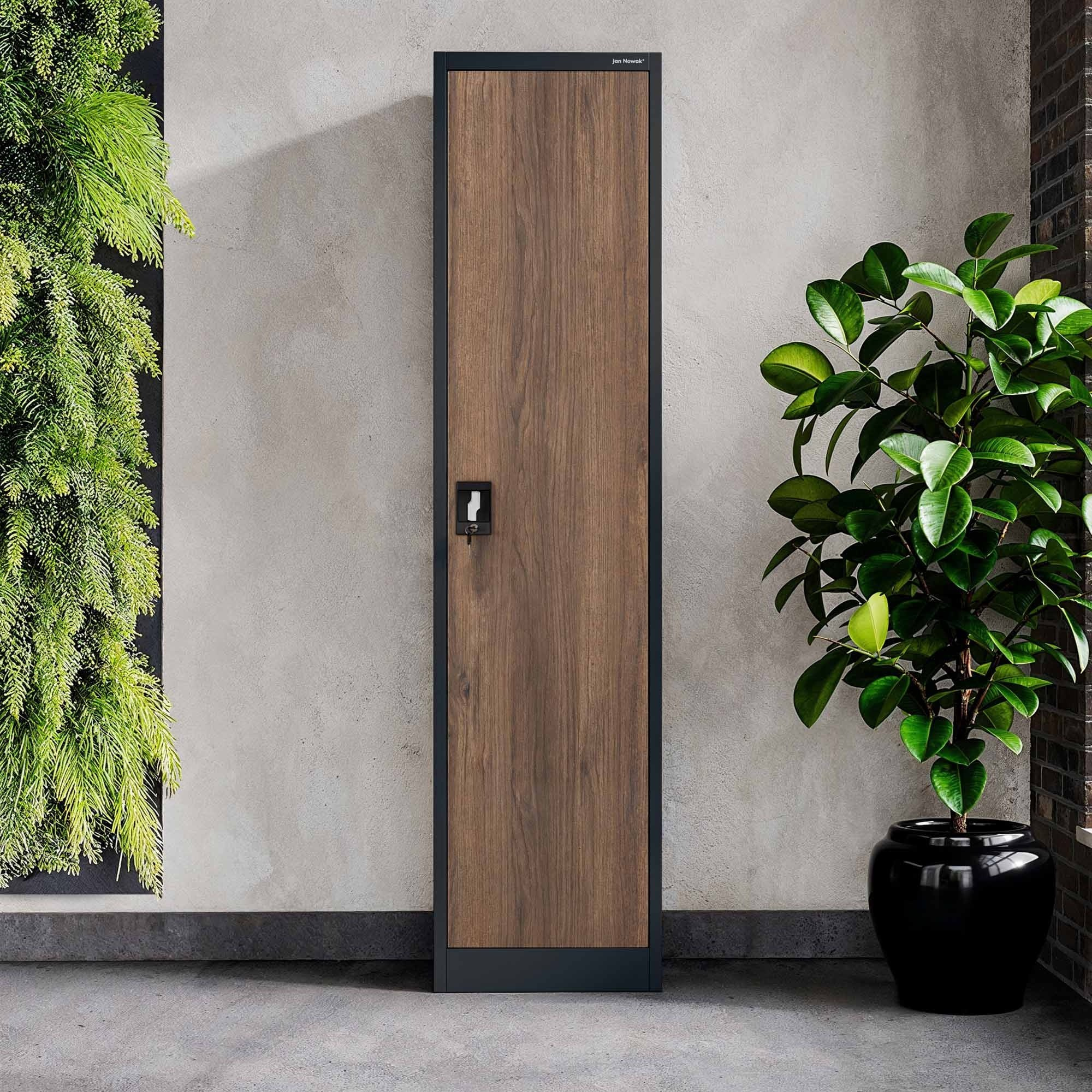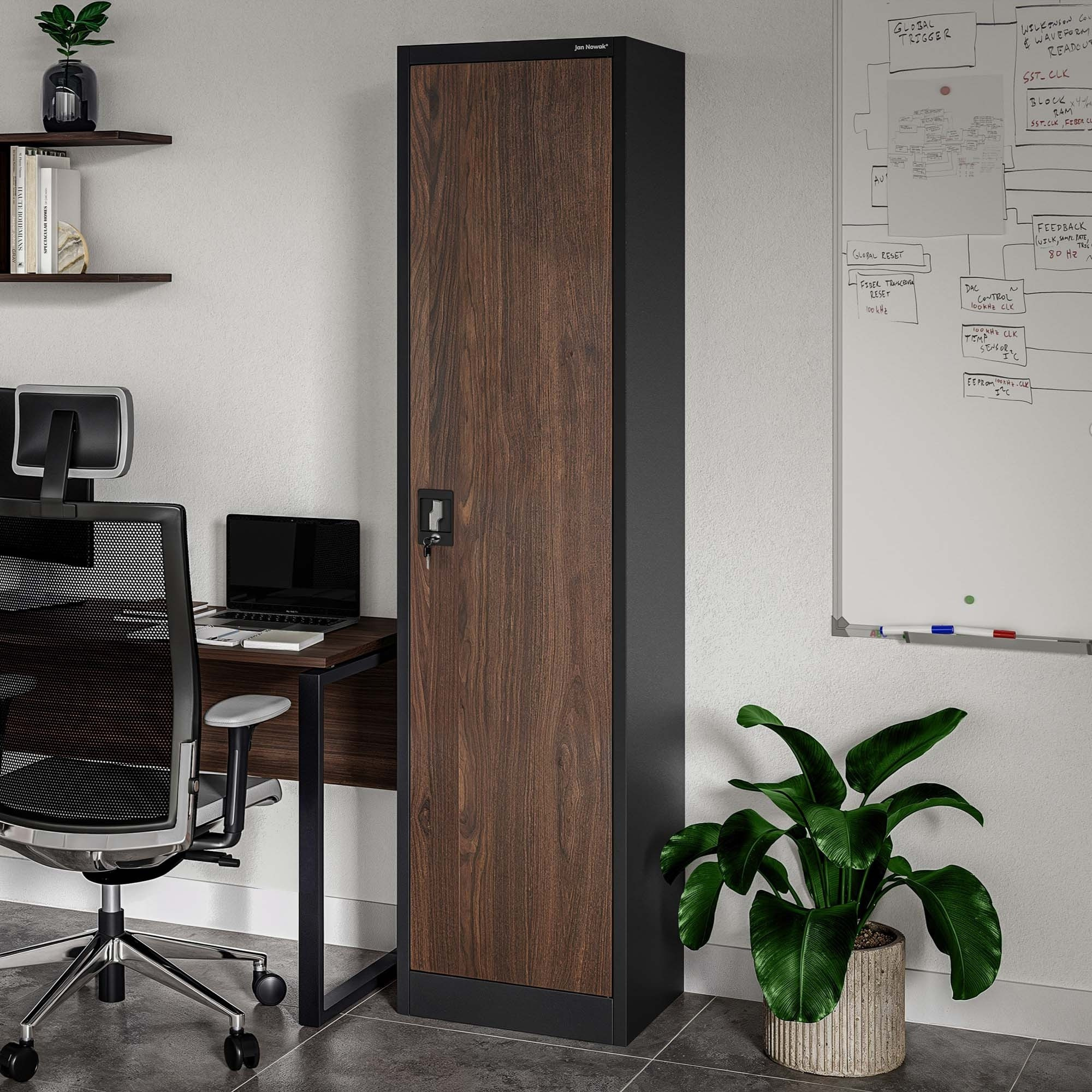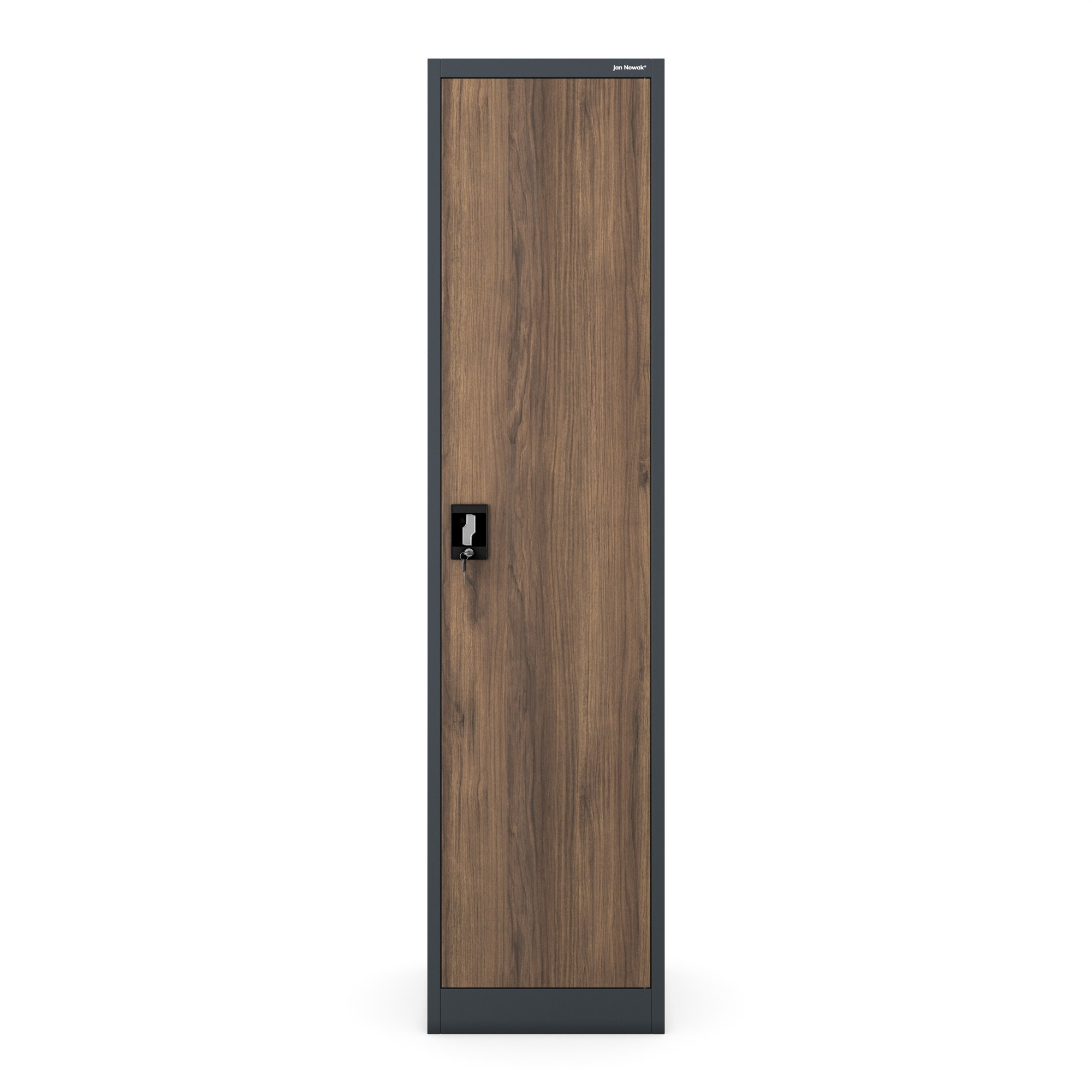 Kancelářská kovová skříň ALEX, 450 x 1850 x 400 mm, Eco Design: antracitová/ořech