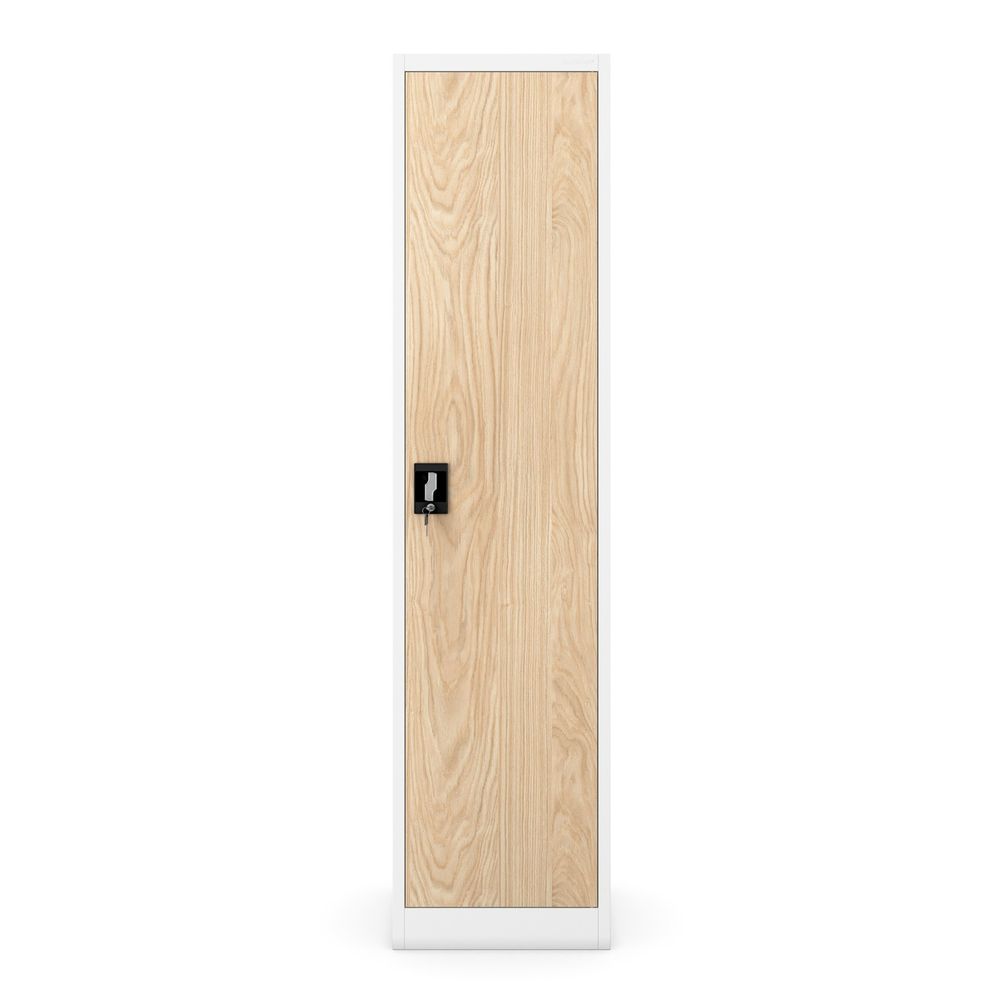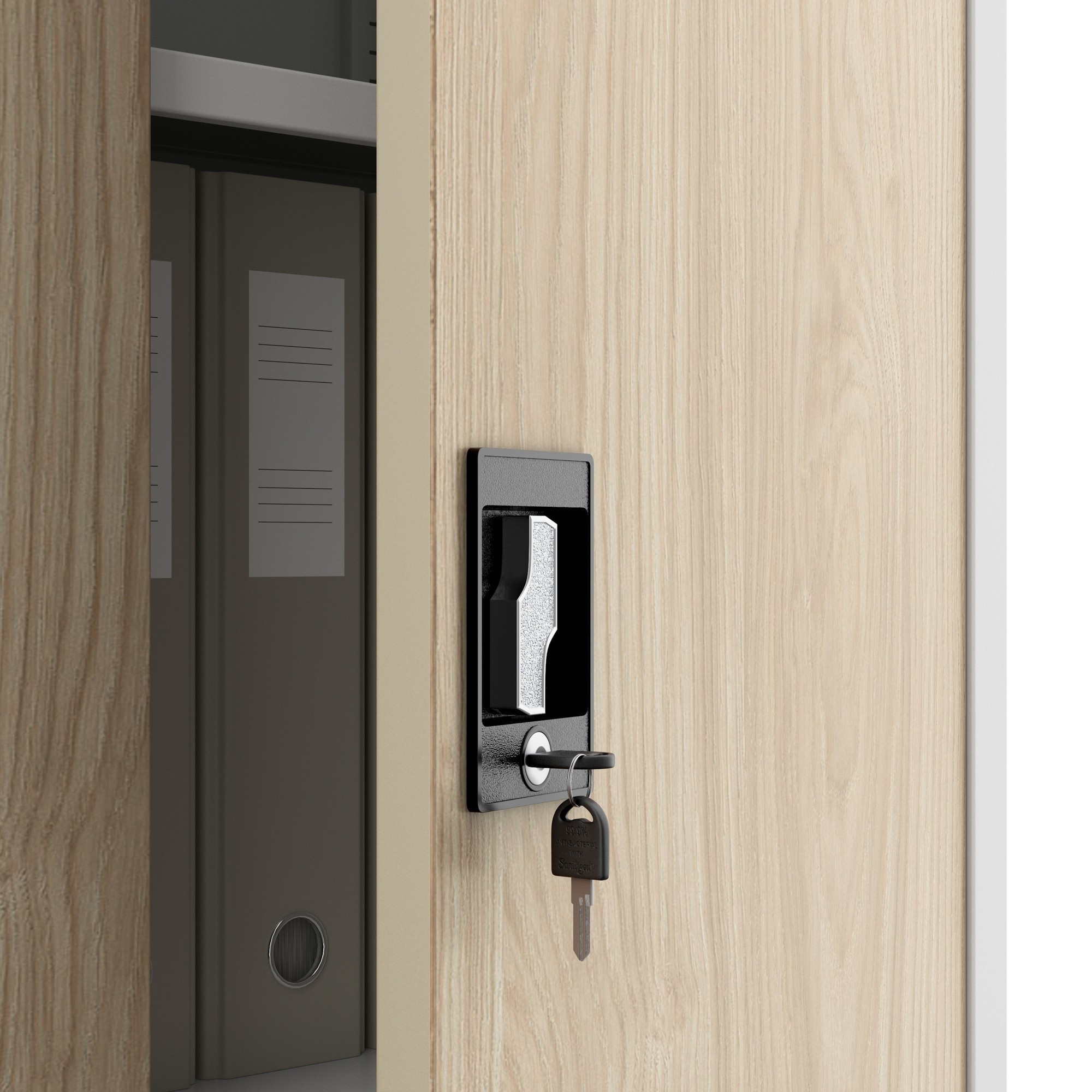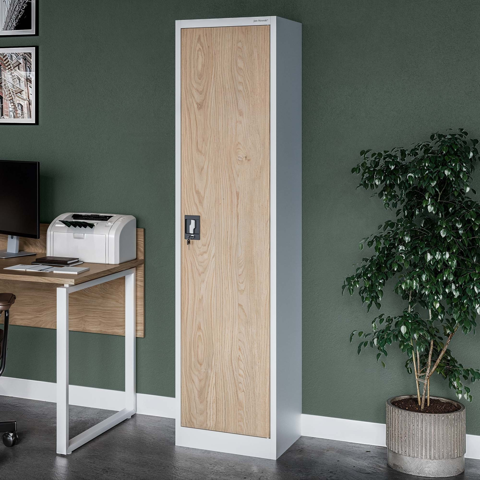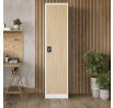 Kancelářská kovová skříň ALEX, 450 x 1850 x 400 mm, Eco Design: bílá/ dub sonoma