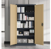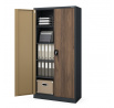 Kancelářská kovová skříň JAN, 900 x 1850 x 400 mm, Eco Design: antracitová/ořech