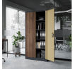 Zapomeňte na nudné a nevzhledné kovové skříně. Skříň JAN z řady Eco Design přináší do vašeho interiéru nádech elegance a sofistikovanosti. Speciální povrchová úprava v barvě antracit (RAL 7016) s dekorem ořechového dřeva dodává skříni luxusní vzhled, který se hodí do moderních i klasických interiérů.