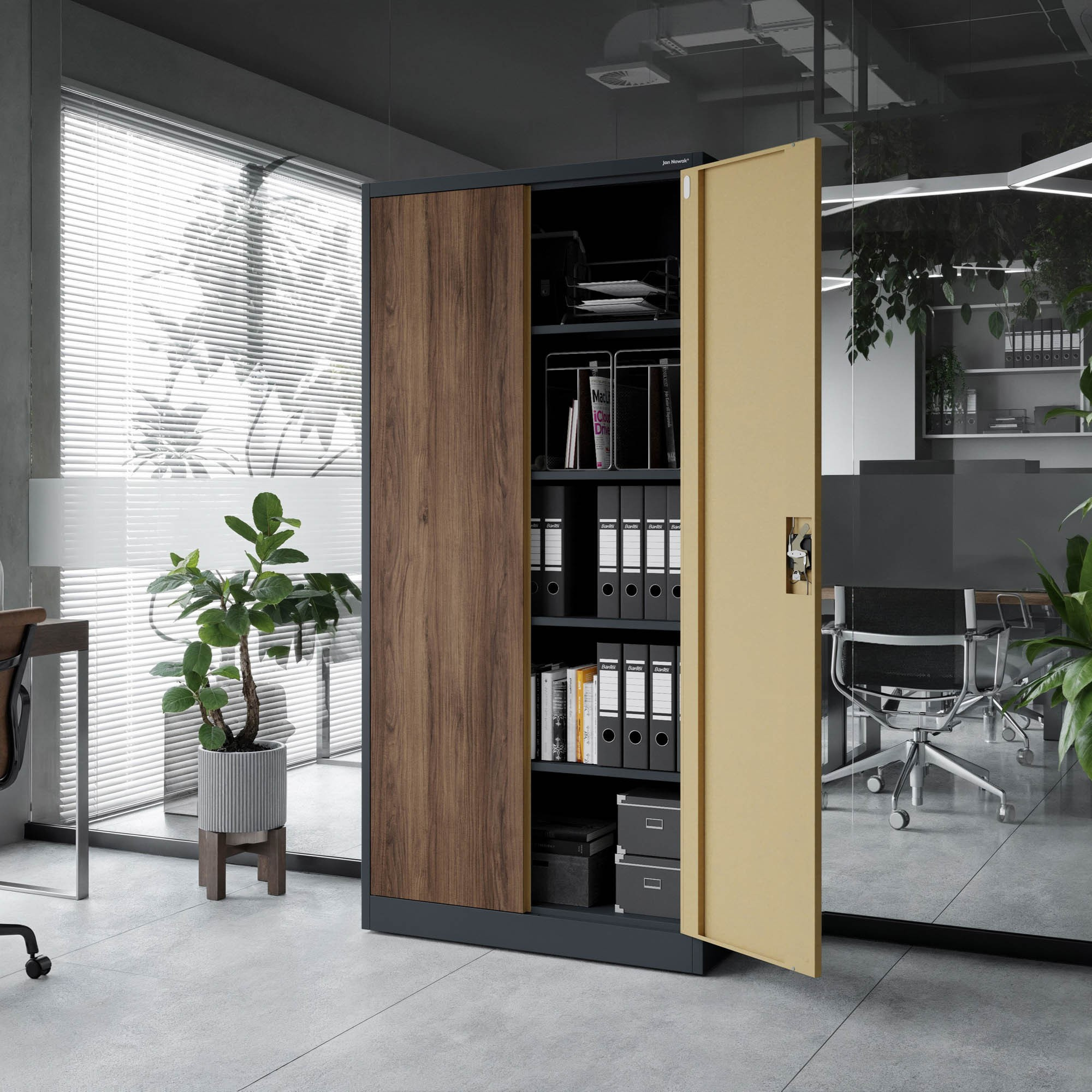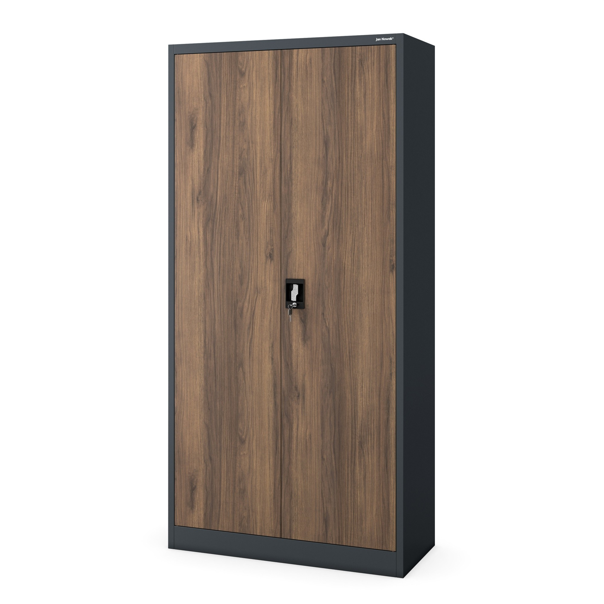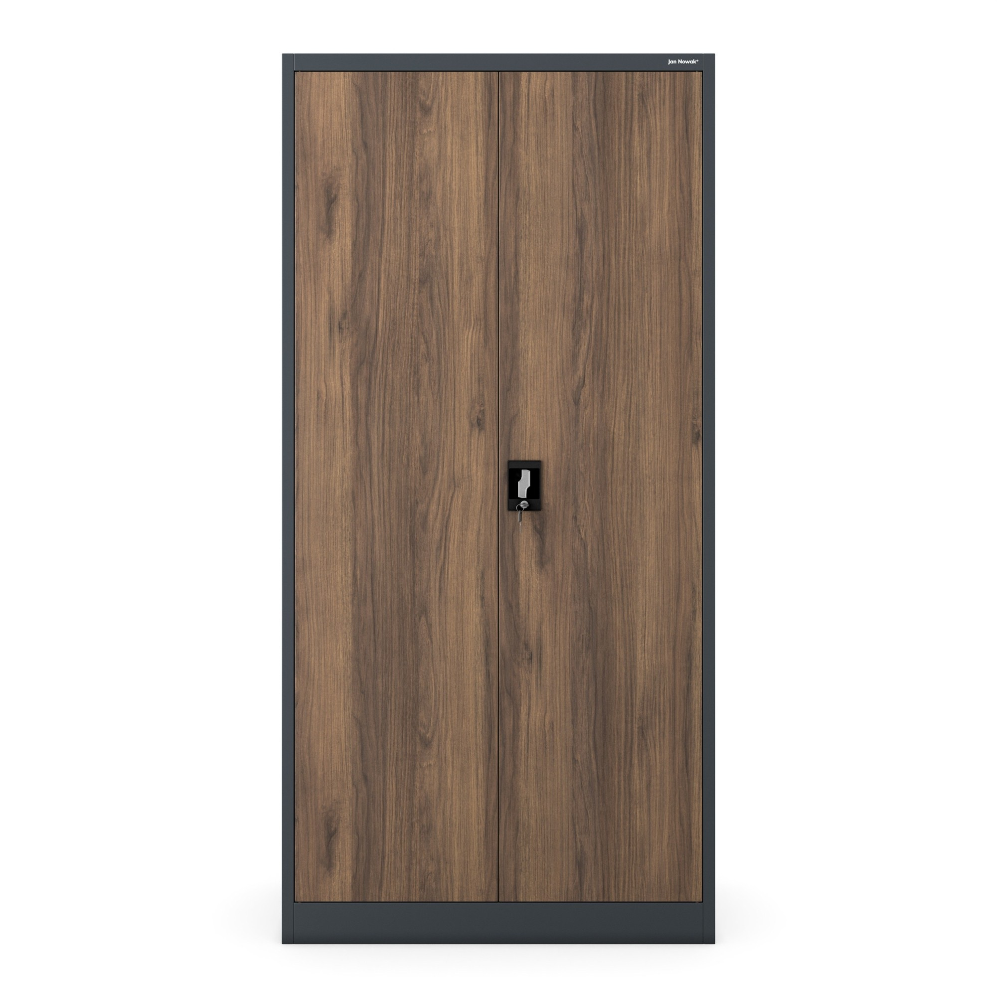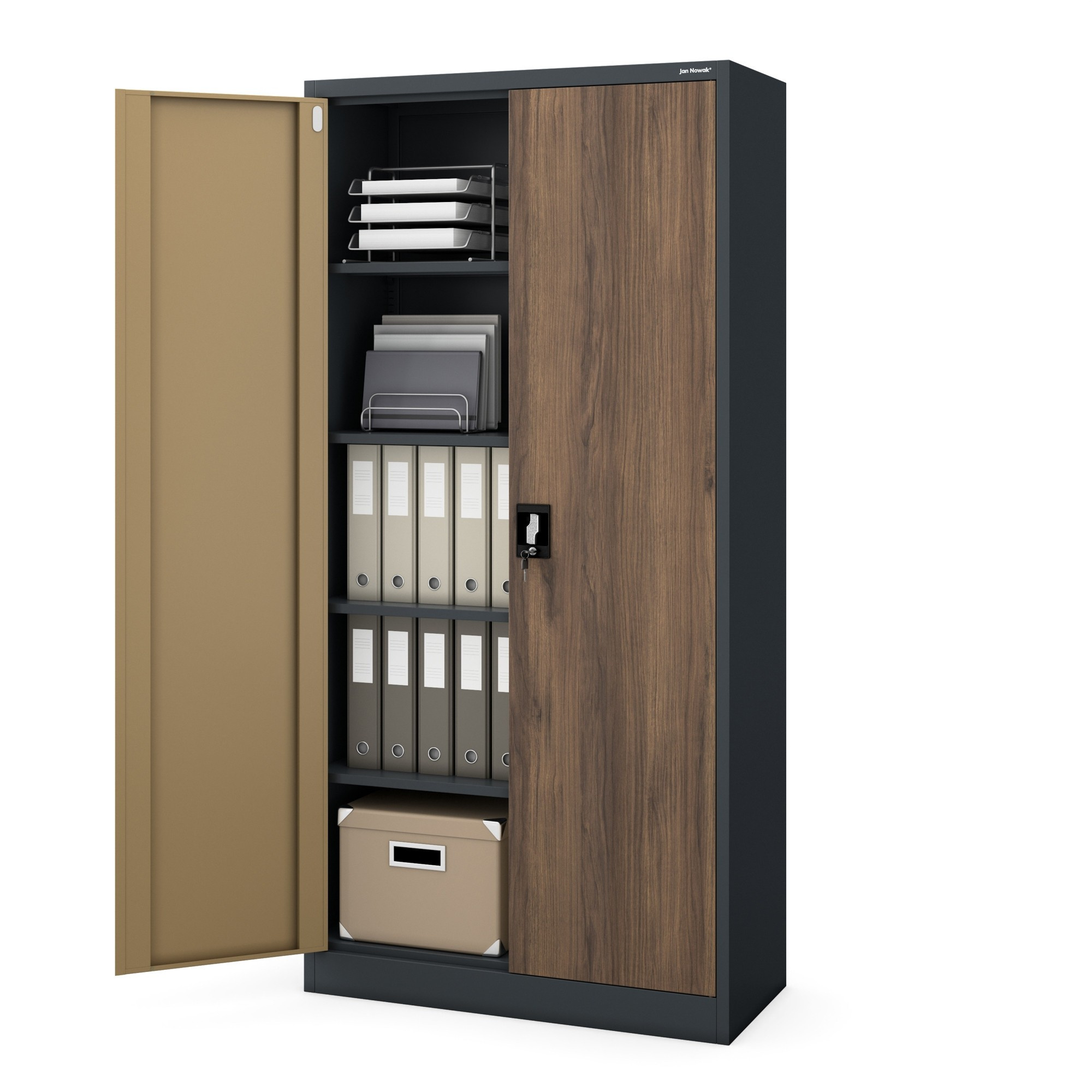 Kancelářská kovová skříň JAN, 900 x 1850 x 400 mm, Eco Design: antracitová/ořech