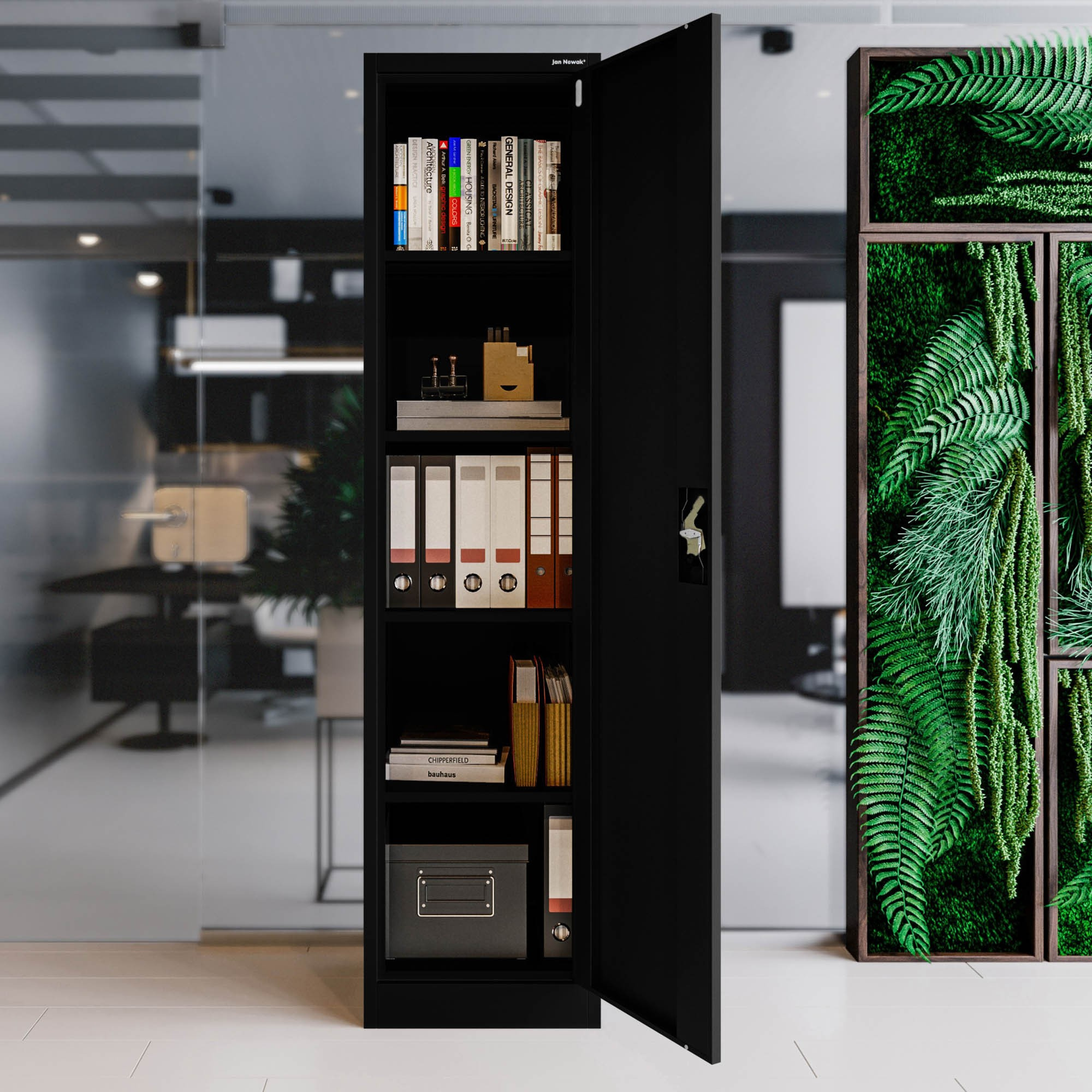 Kancelářská kovová skříň na dokumenty ALEX, 450 x 1850 x 400 mm, černá