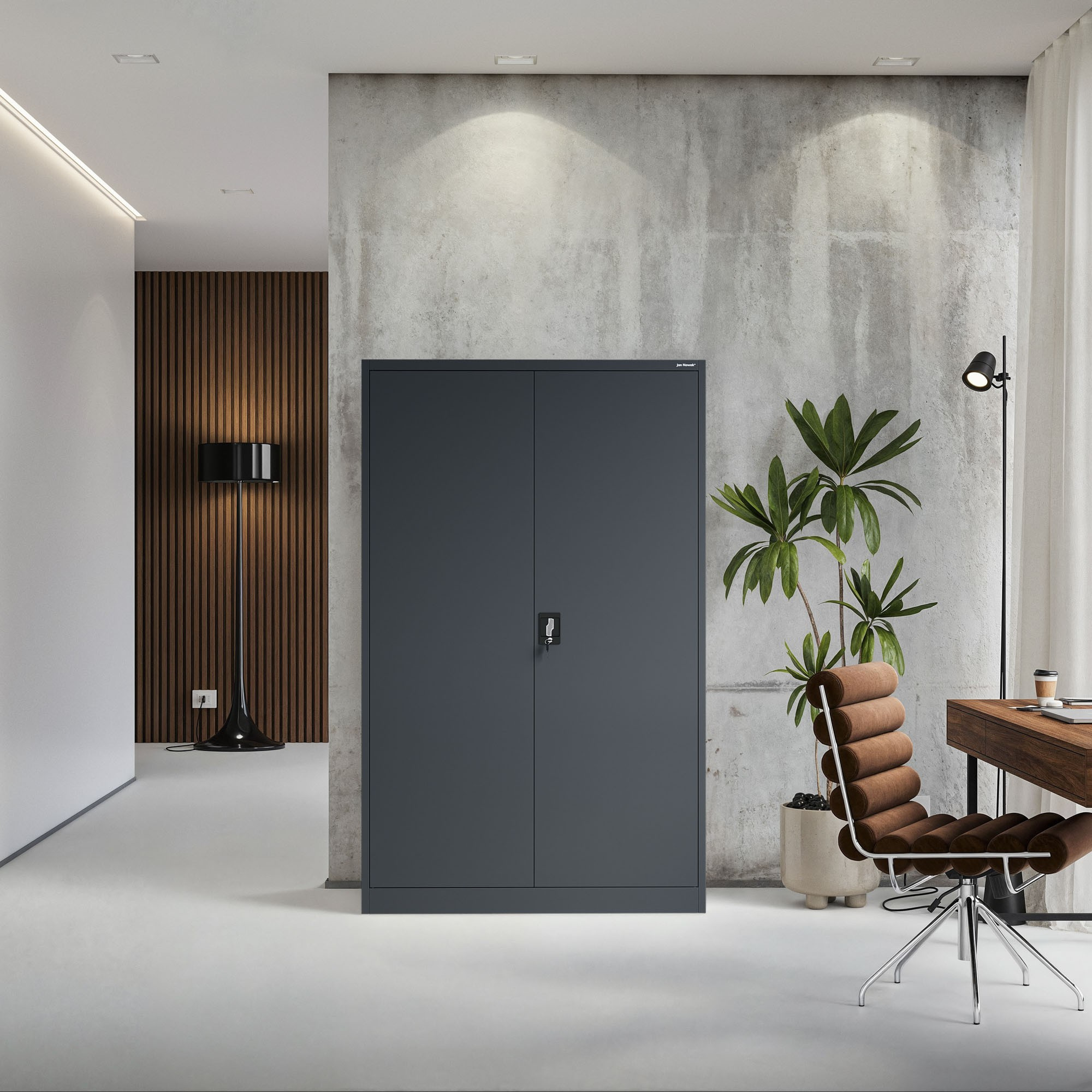 Kancelářská kovová skříň na dokumenty antracitová JAN II, 1150 x 1850 x 400 mm
