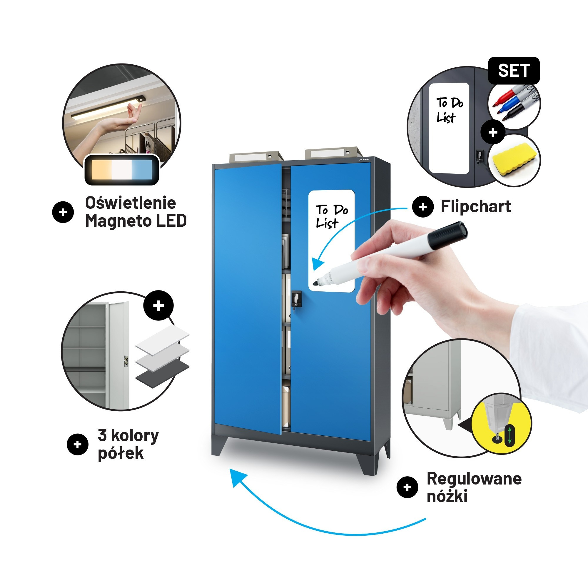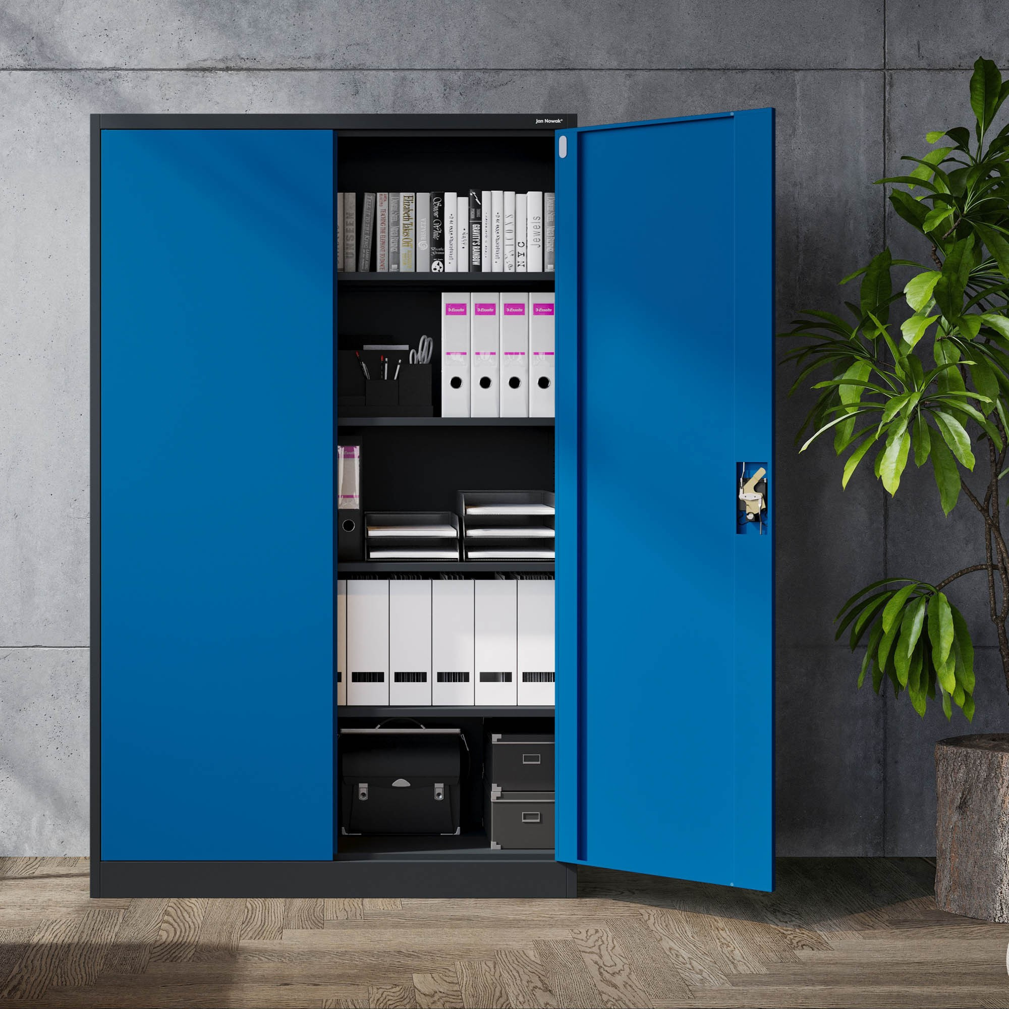 Hledáte spolehlivé a elegantní řešení pro uskladnění dokumentů, nářadí, zdravotnického vybavení nebo čehokoliv jiného? Představujeme vám skříň JAN II v atraktivní antracitově-modré kombinaci, která se stane nejen praktickým, ale i designovým prvkem vašeho interiéru.