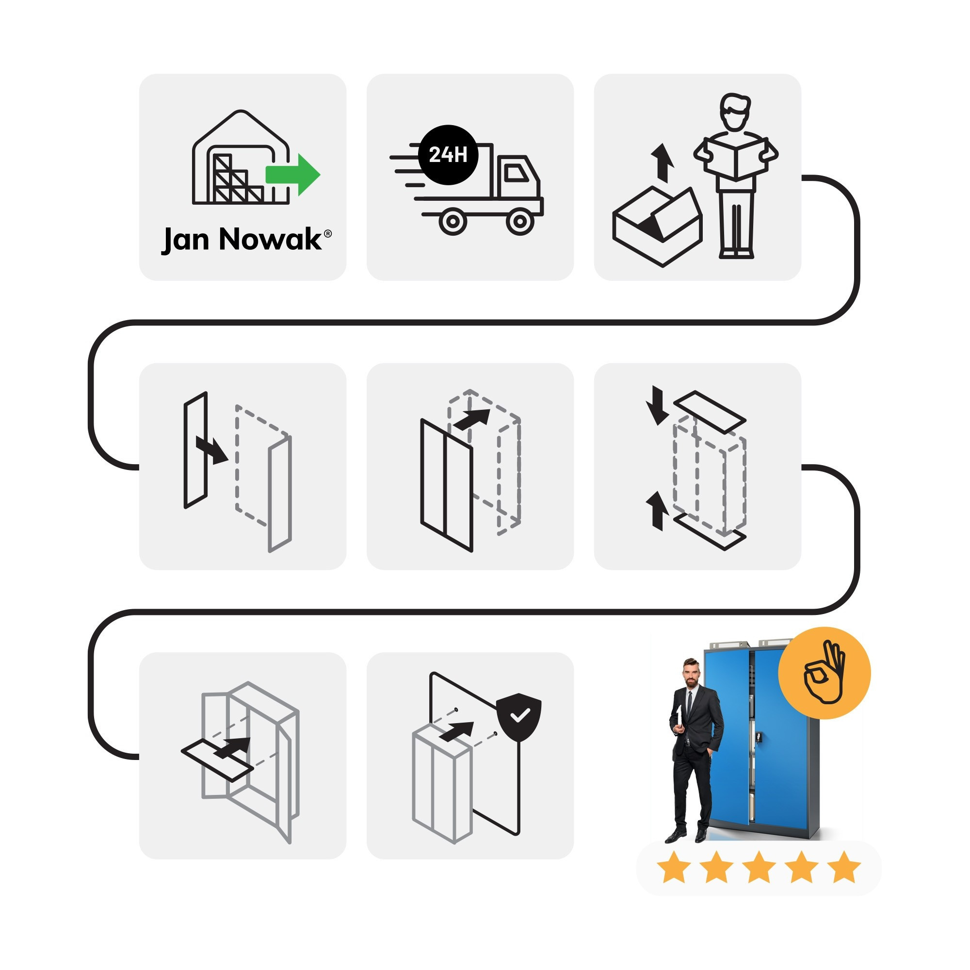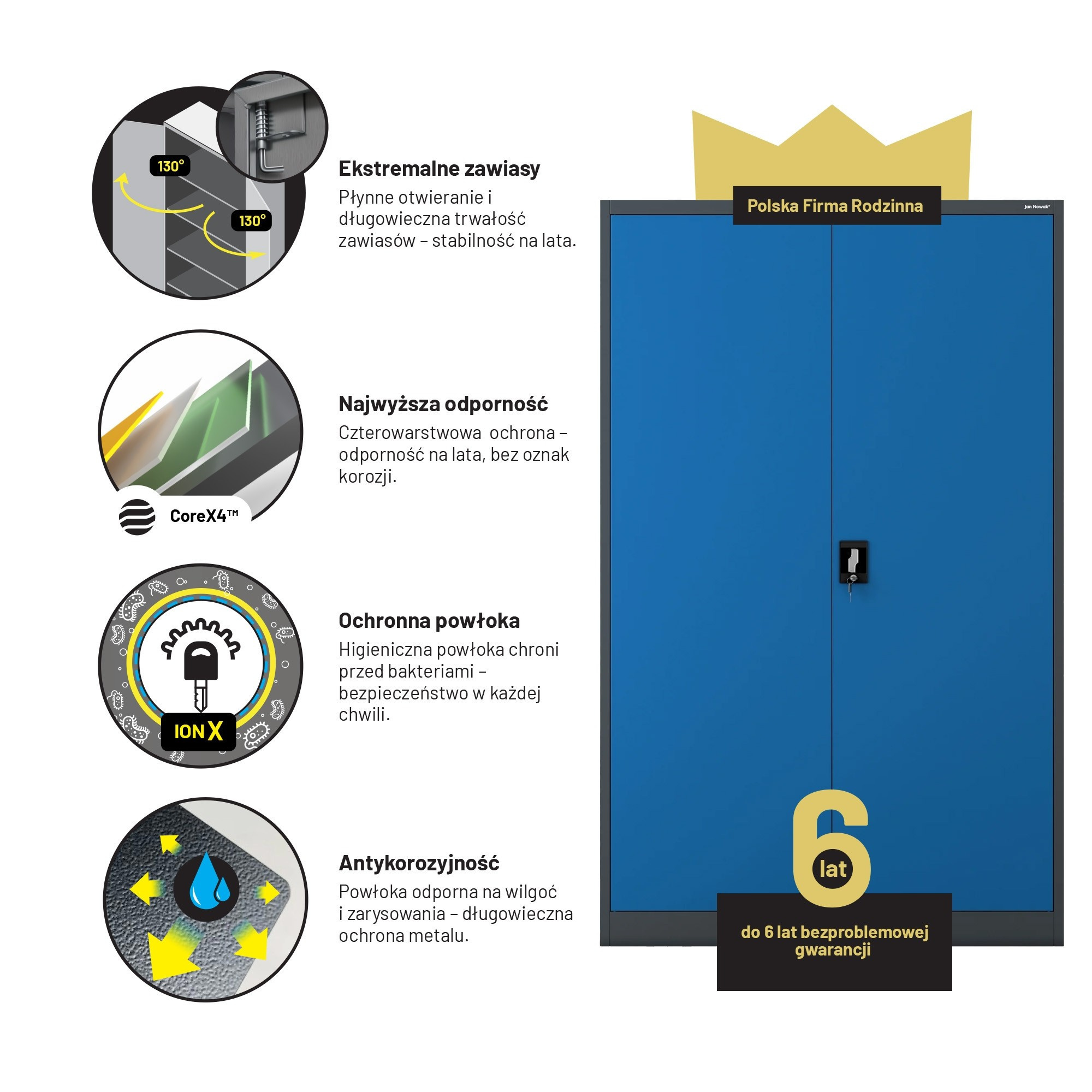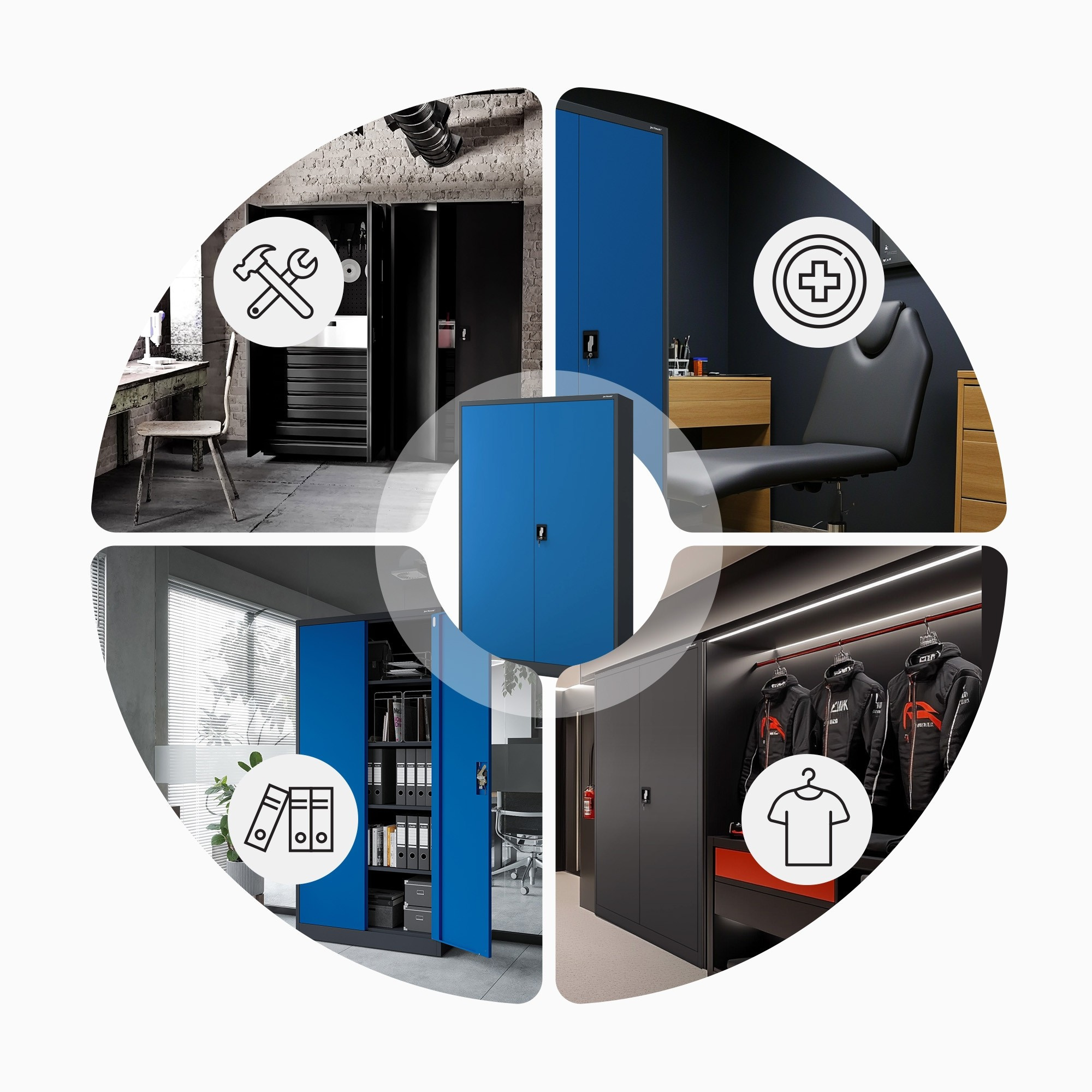 Skříň JAN II je navržena tak, aby splňovala širokou škálu požadavků. Ať už ji potřebujete v kanceláři, zdravotnickém zařízení, dílně nebo doma, vždy se dokonale přizpůsobí vašim potřebám. Její robustní konstrukce a promyšlený design zaručují dlouhou životnost a bezproblémové používání.