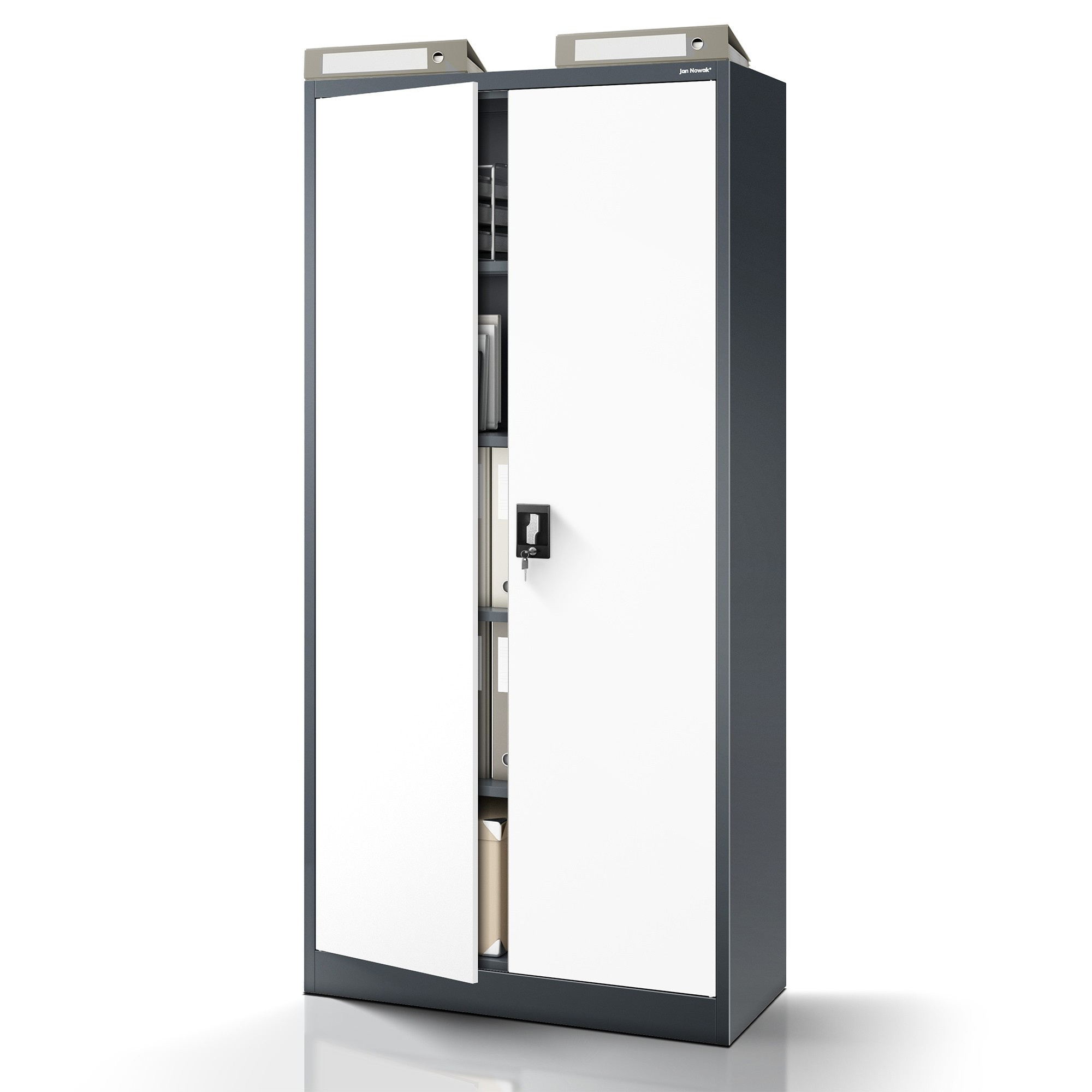 Kancelářská kovová skříň na dokumenty antracitovo-bílá: JAN H, 900 x 1950 x 400 mm