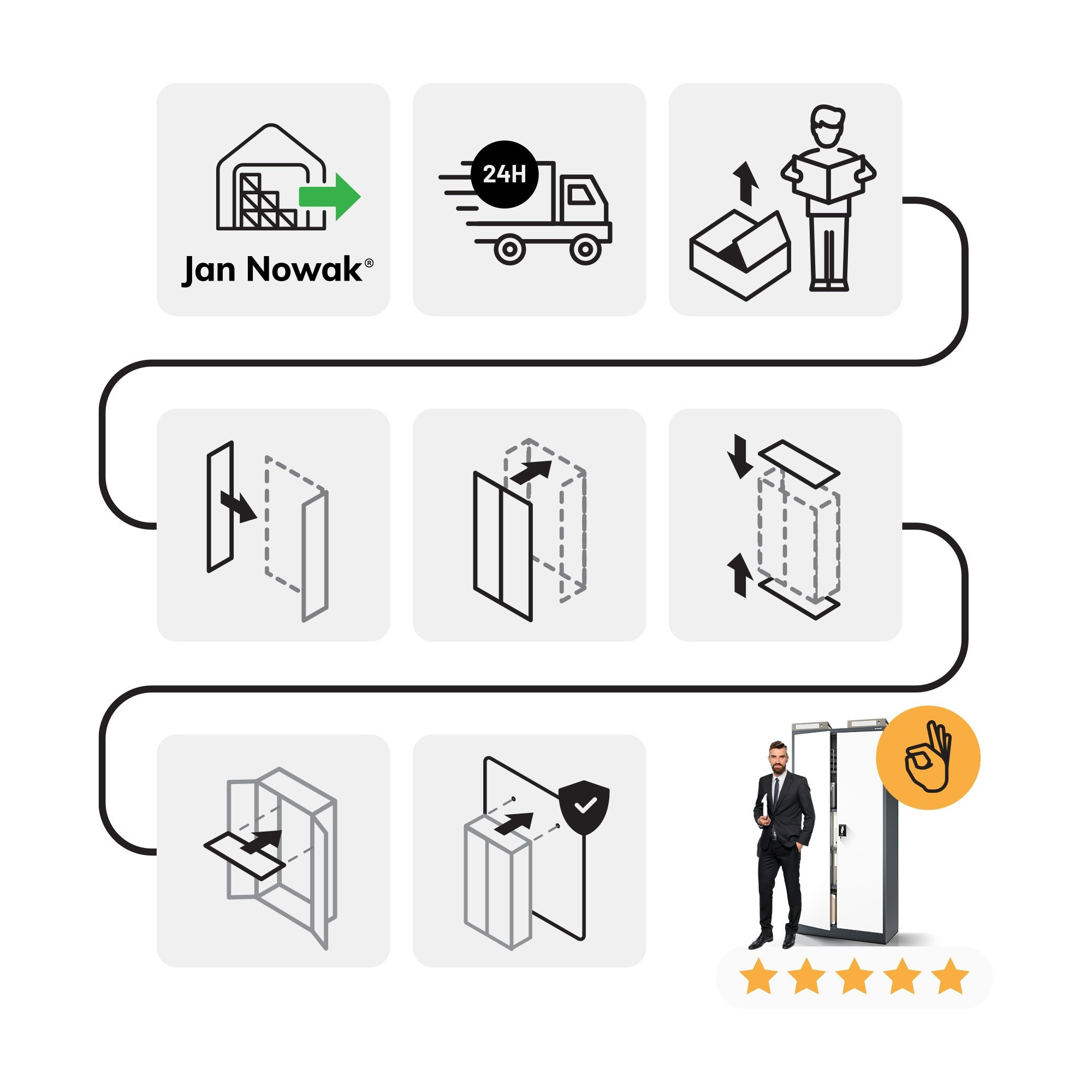 Klademe důraz na kvalitu našich produktů, proto je skříň JAN H vyrobena z kvalitních materiálů a podrobena přísným kontrolám. Můžete se spolehnout na její trvanlivost a spolehlivost. Skříň je vybavena atestem PZH, který potvrzuje její bezpečnost pro používání. Uzamykatelná konstrukce splňuje požadavky GDPR 2018, takže si můžete být jisti, že vaše citlivé informace jsou v bezpečí.